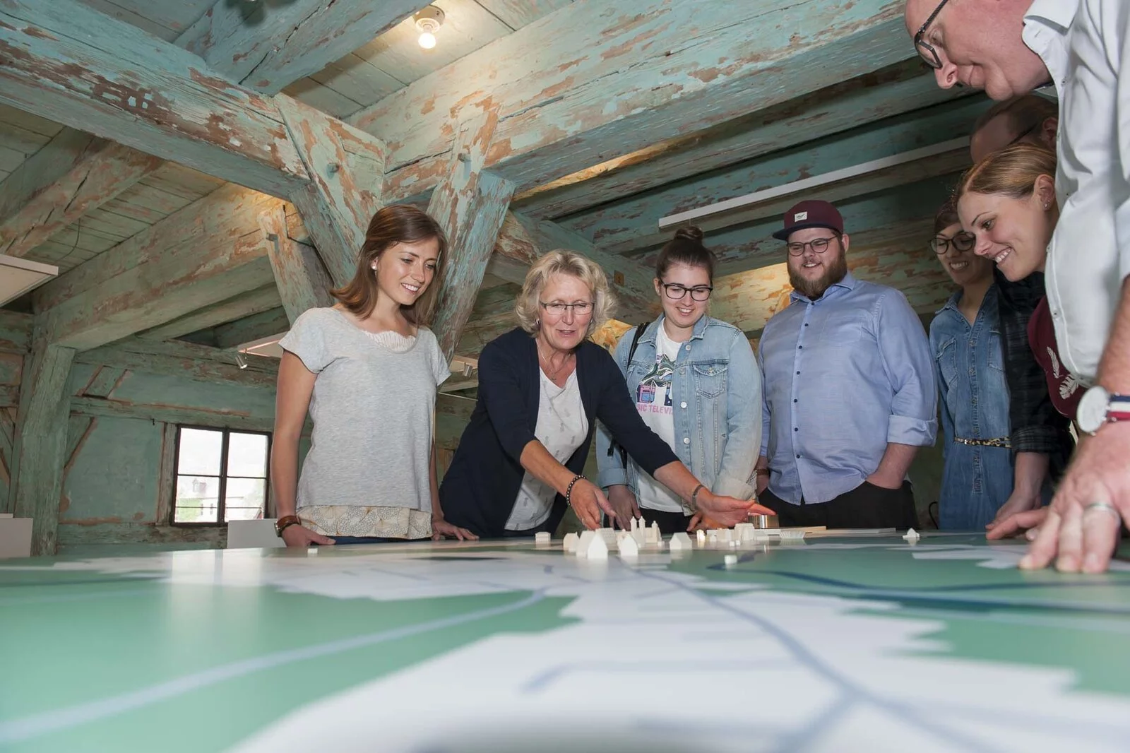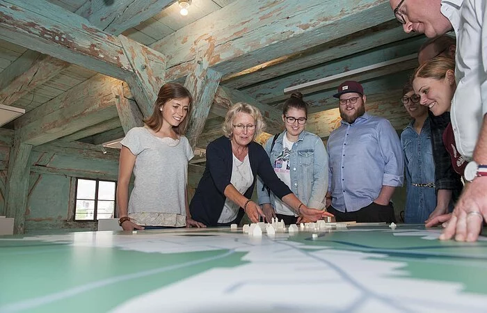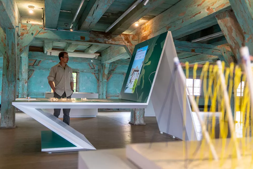 Erkunden Sie unsere Erlebniswelten, wie den dreidimensionalen Stadtplan, das Panorama-Kino, den begehbaren Braukessel, die Aromastation und den medialen Biertisch.
