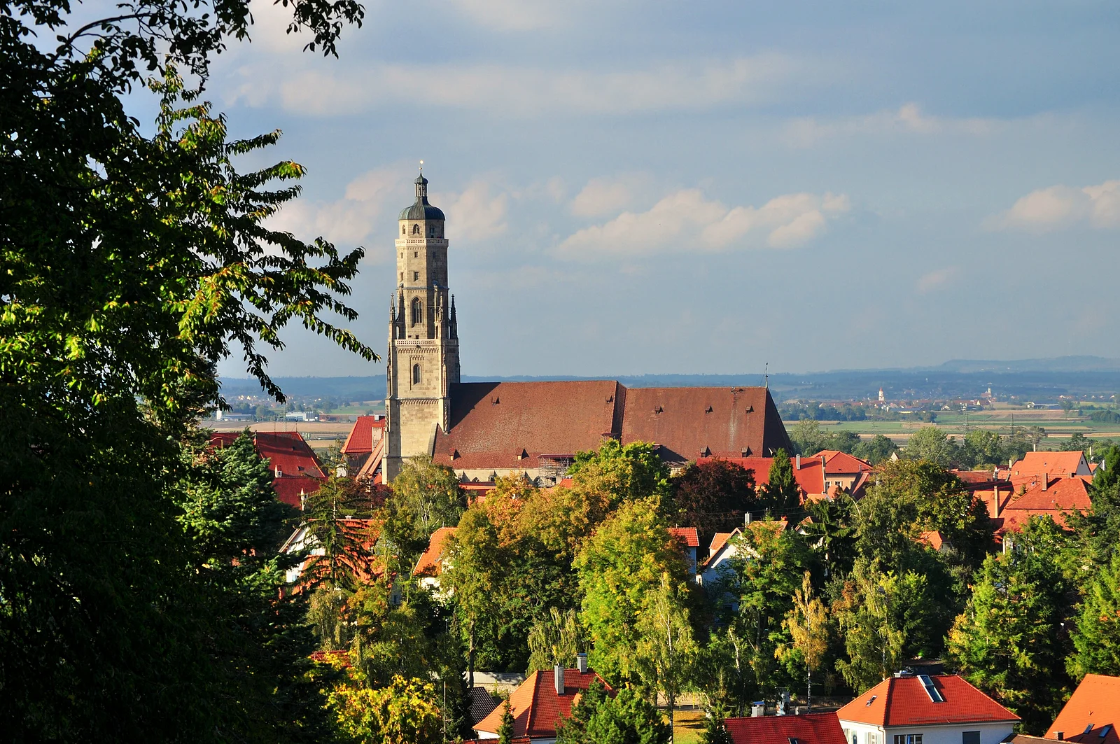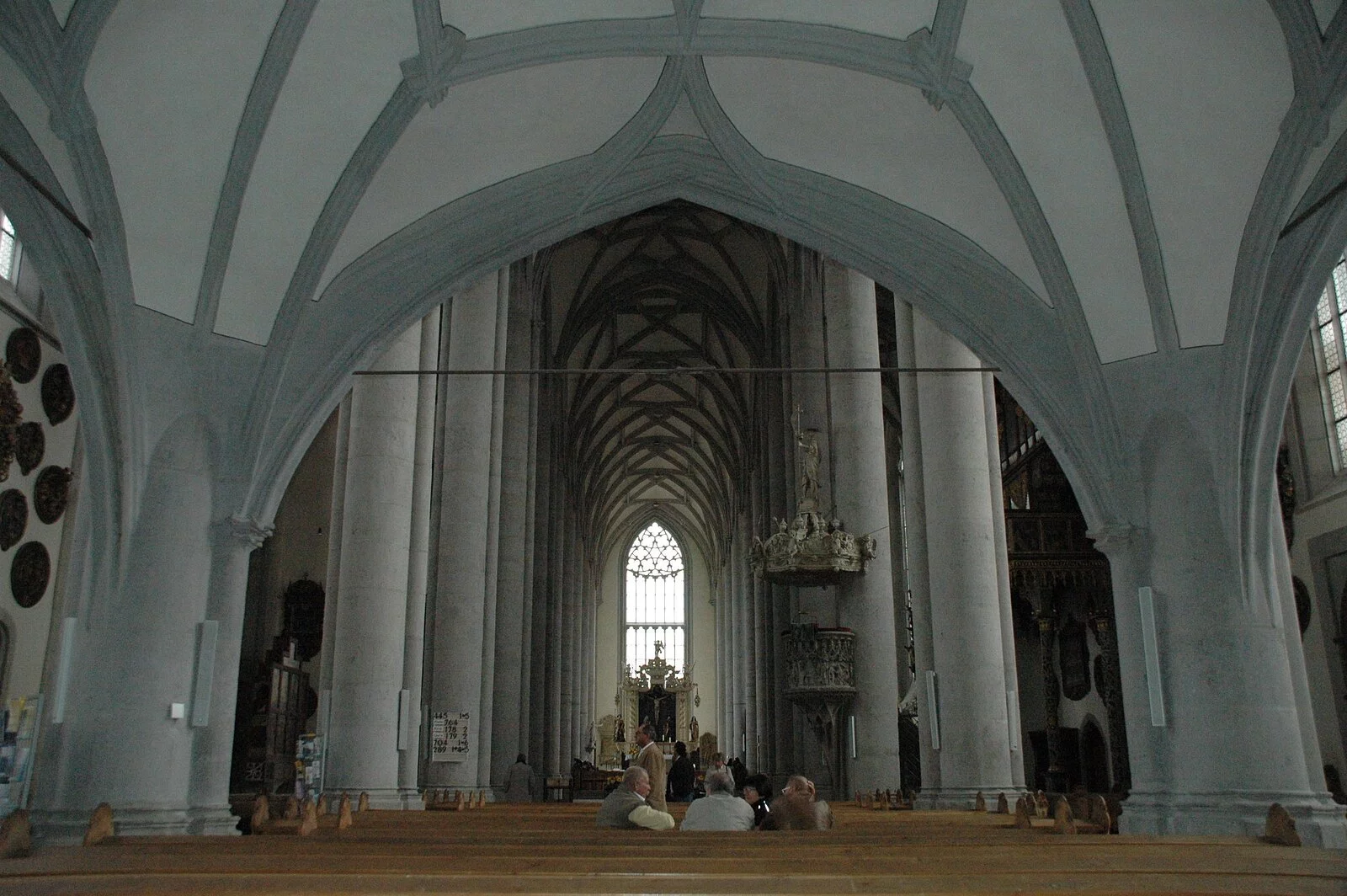 Auf 22 schlanken Säulen werden Schiff und Chor überwölbt, 24 Fenster mit Maßwerk erhellen die Kirche. Nach der Herstellung des Hochaltars durch Friedrich Herlin 1462 und der Vollendung des Turmes 1490 ist 1505 der Bau mit der Ausführung des prächtigen Gewölbes beendet.