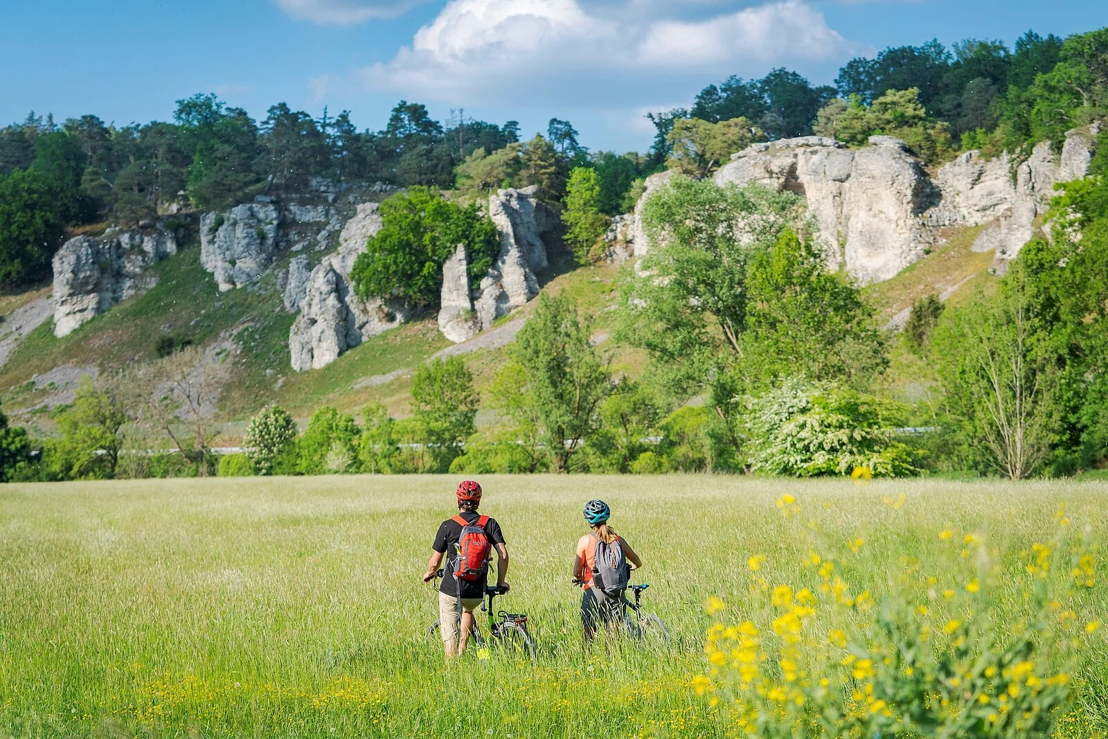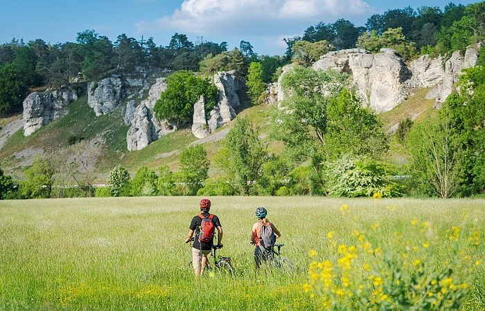 Der prämierte und äußerst beliebte Altmühltal-Panoramaweg führt im oberen Bereich der Hanglage über die Felsgruppe „Zwölf Apostel“ und bietet einen einmaligen Ausblick auf das Solnhofer Tal.