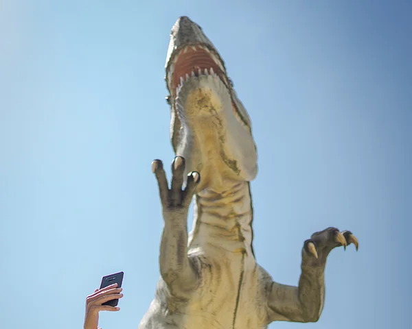 Ein Allosaurus in Lebensgröße begrüßt die Besucher am Eingang zum Fossiliensteinbruch Blumenberg: Er ist 14 Meter lang und 4,5 Meter hoch! Der Allosaurus wird auch der "Tiger der Jurazeit" genannt - er lebte während des Oberen Jura vor rund 150 Millionen Jahren. Damals entstanden auch die Gesteine des Blumenberger Steinbruchs. Der Allosaurus gehört zu den fürchterlichsten Räubern seiner Zeit. Der Fleischfresser war ein Verwandter des berühmten Tyrannosaurus Rex. Zum Glück ist der Blumenberger Allosaurus ein Urzeitwächter aus Kunstharz - man kann sich also unbesorgt mit ihm fotografieren lassen!