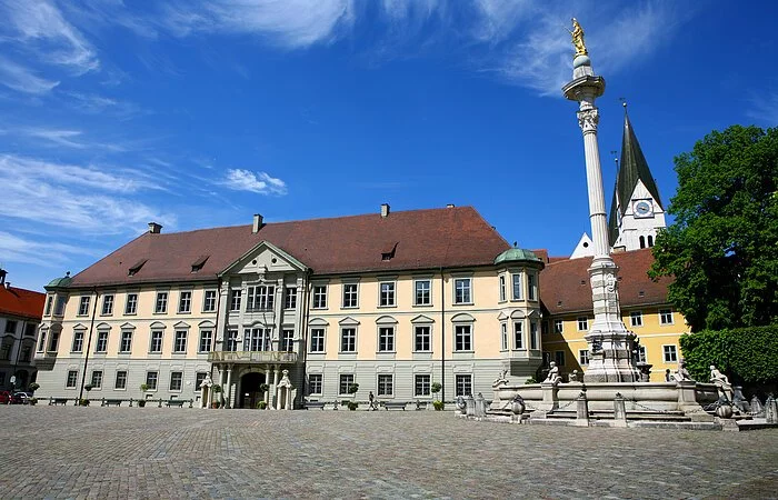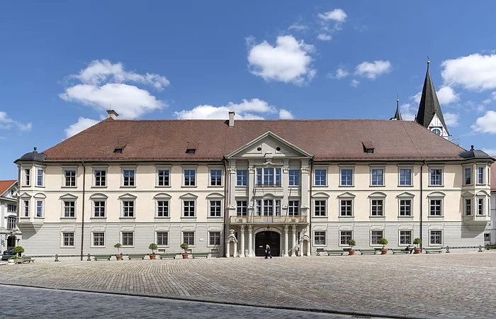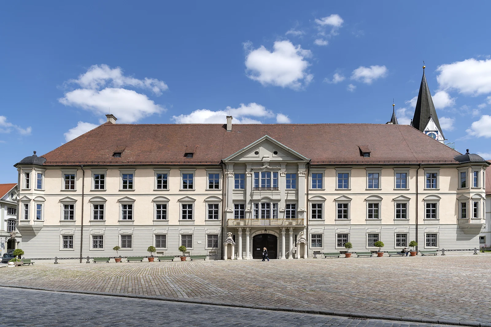 Die Residenz schließt mit ihrer großen barocken Dreiflügelanlage an die Südseite des Domes an. Das Prunk-Treppenhaus und der Spiegelsaal im Inneren des Gebäudes sind hervorzuheben.