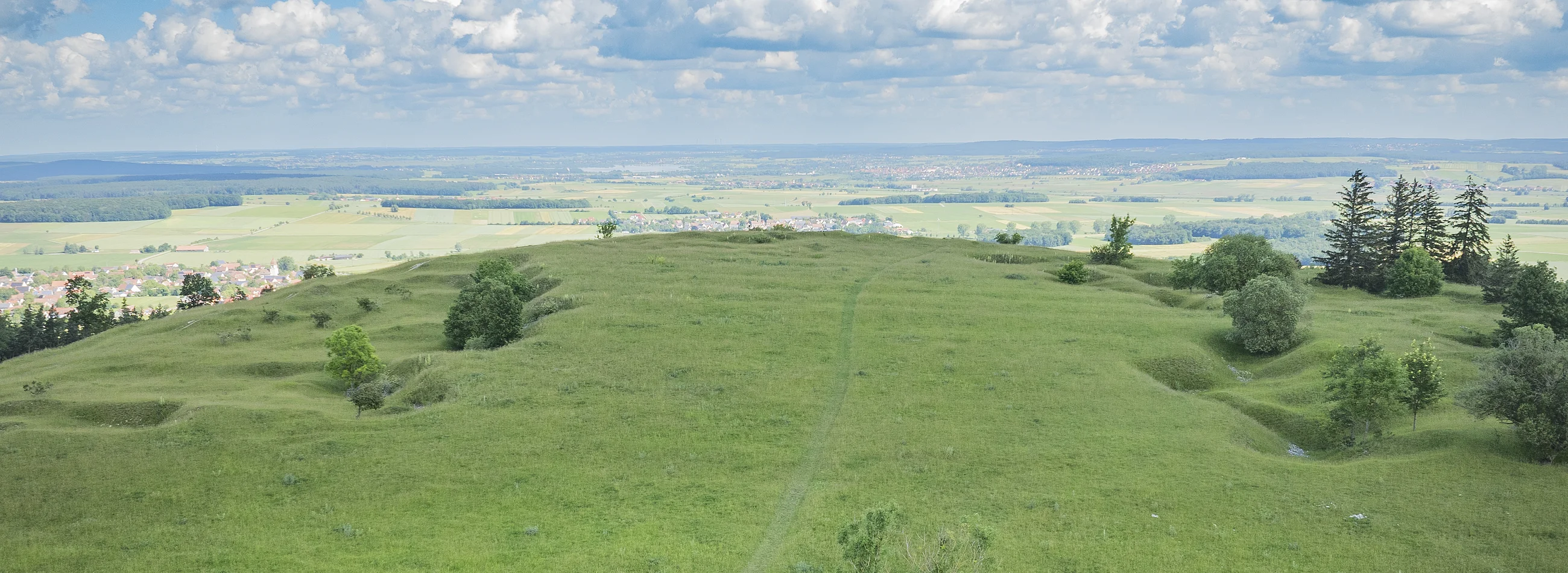 Von der Gelben Bürg, wie der Gelbe Berg, ein 628 Meter hoher Berg des Hahnenkammes südwestlich der Gemeinde Dittenheim liegend, auch genannt wird, bietet sich von einem fast ebenmäßigen Plateau ein fantastischer Ausblick auf die Gunzenhauser Ebene, das Fränkische Seenland und auch weit hinein ins Weißenburger Land. Die Größe dieses unter Schutz gestellten Landschaftsbestandteiles beträgt ca. 37,5 ha.