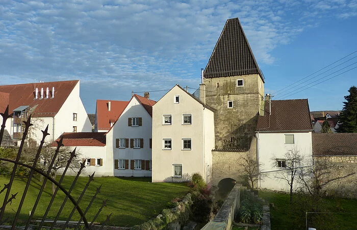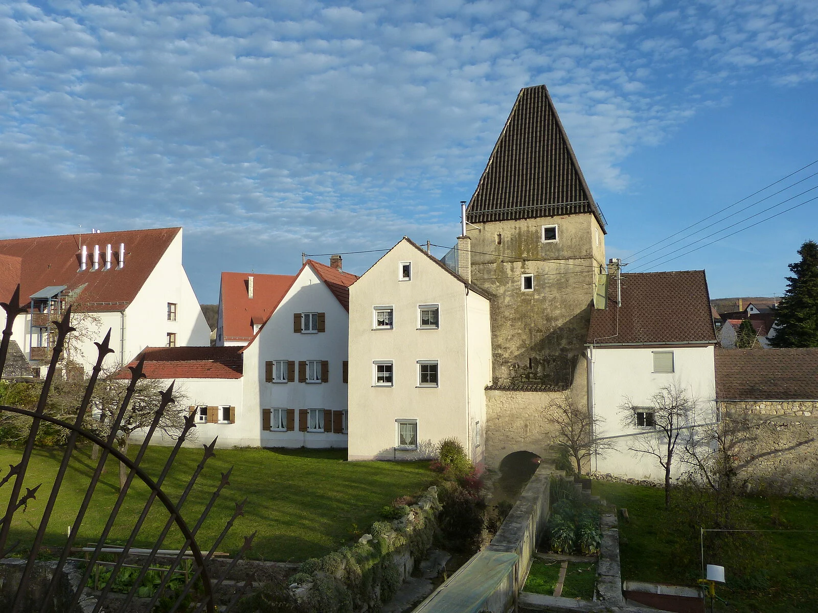 Der früher offen fließende Bach verläuft heutzutage verrohrt unterhalb der Straße. Merkmal des Häutbachturms ist die außen verlaufende Zugangstreppe mit ihrer Überdachung und dem noch immer zu sehenden Fachwerk auf der Turminnenseite. Die Räumlichkeiten im Inneren werden heute als ein privates Reitermuseum genutzt.