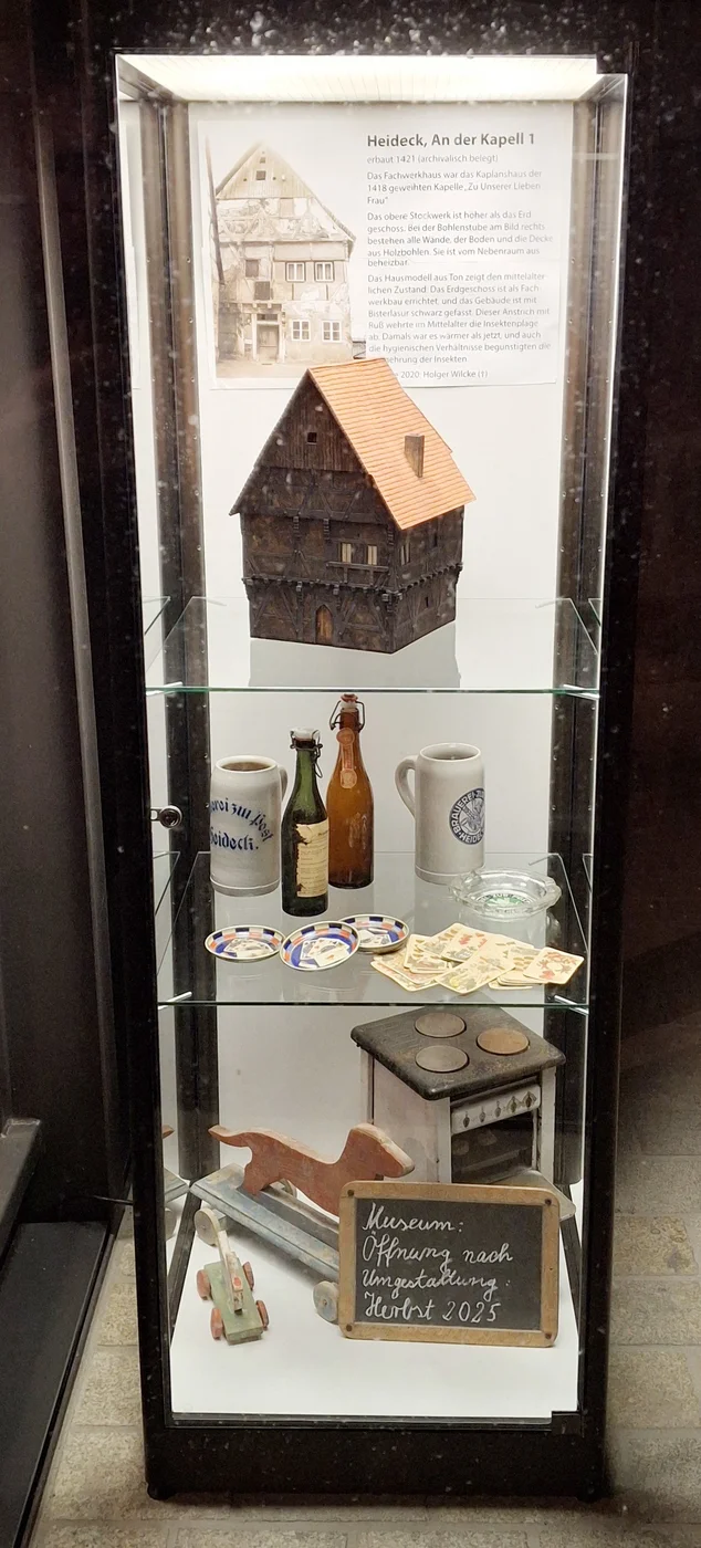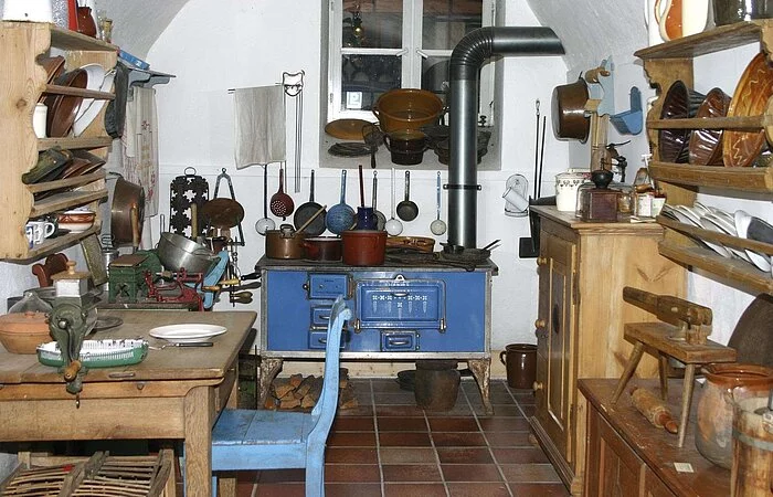 Eine kleine Schulstube ist für Kinder Hauptanziehungspunkt des Museums. Was ist eine Kochkiste und was ein Sparherd? Die Antworten sind in der Museumsküche zu finden. Bemalte Truhen und Schränke sowie ein Himmelbett aus einem Heidecker Ortsteil vermitteln, wie früher eine Schlafkammer ausgestattet war.