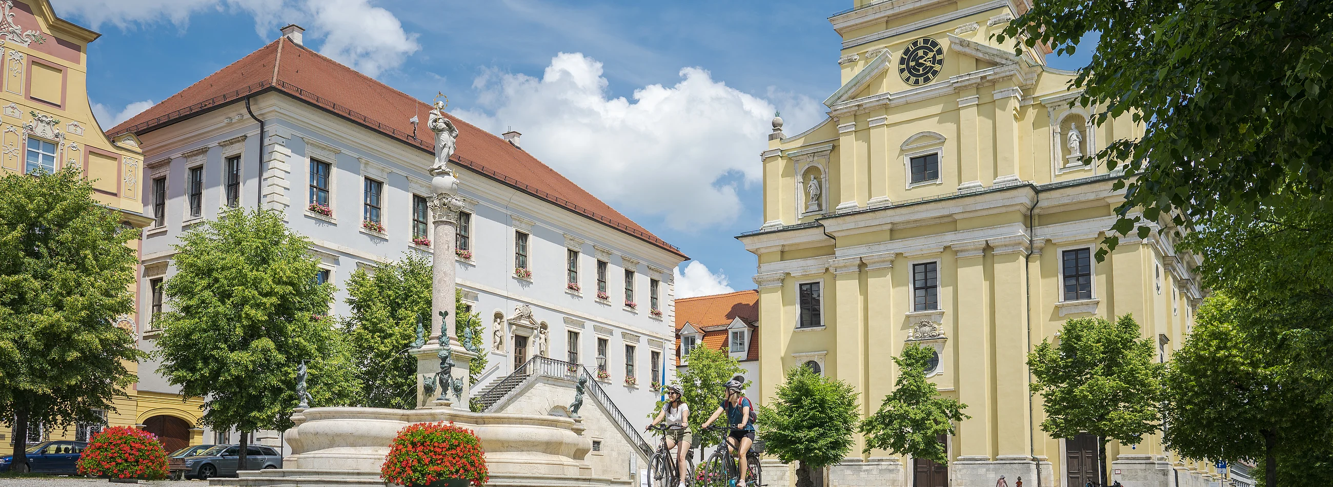 Der prachtvolle Marienbrunnen von 1729 und 1773 bildet den Mittelpunkt dieses historischen Platzes.