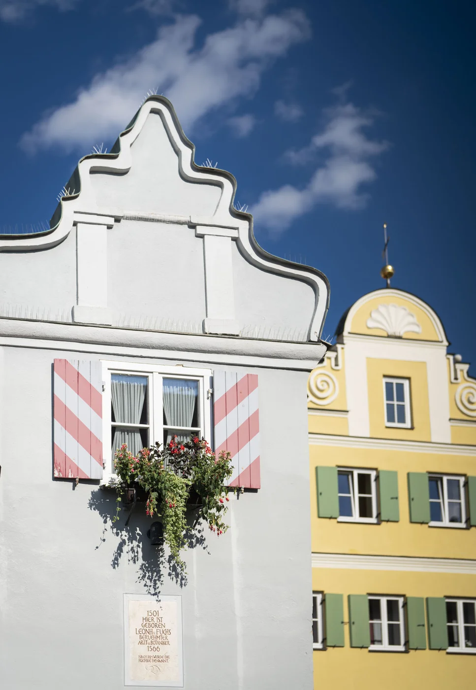 Der gepflasterte Marktplatz hat eine nahezu quadratische Fläche. Sein jetziges Aussehen bekam er im 17. und 18. Jahrhundert. Die Pflasterung wurde in den letzten Jahren vorgenommen bzw. erneuert. Er gehört zu den schönsten Marktplätzen in Schwaben und ist Zeugnis für ein wohlhabendes Bürgertum. Dort steht auch ein Kuriosum: das Geburtshaus von Leonhart Fuchs - dem Namensgeber der Fuchsie. Es misst an seiner schmalsten Stelle nur 1,50 Meter.
