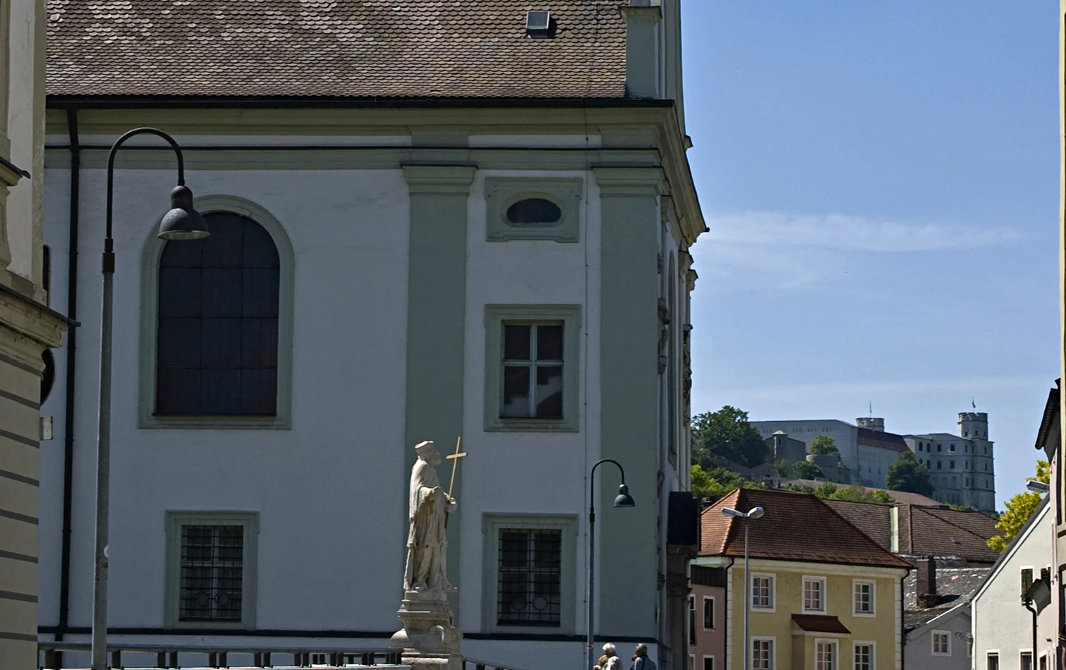 Engels Bau ist ein Komplex, der Sakralbau und dreigeschossigen Pfarrhof unter einem gemeinsamen Satteldach vereinigt und nach Süden orientiert ist. Die anschließenden Trakte im Westen der Kirche, die einen Hof ausbilden, dienten als Wohnungen der Pfründner. Für die Kirche konzipierte Engel straßenseitig eine Schaufassade mit Monumentalpilastern und einem geschweiften Blendgiebel. In die Nischen sind Statuen der heiligen Willibald, Walburga, Martin und Elisabeth eingestellt. Gemäß den kirchenrechtlichen Vorschriften verfügt die Kirche nur über einen Dachreiter.