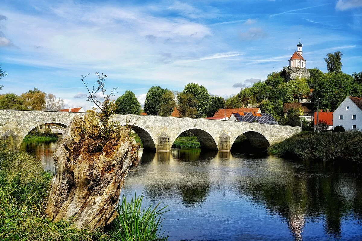 Durch das baorcke Portal, vorbei an den 1977 errichteten Stationen des Kreuzweges, erreicht man das hoch über der Wörnitz gelegene Kleinod. Die Kapelle wurde 1750 unter Abt Cölestin zu Kaisheim mit ovalem Grundriss erbaut. Besonders sehenswert sind der Altar mit Kreuzigungsgruppe und das von Gernhard Göz geschaffene Deckenbild, das die Schlüsselübergabe an Petrus zeigt.