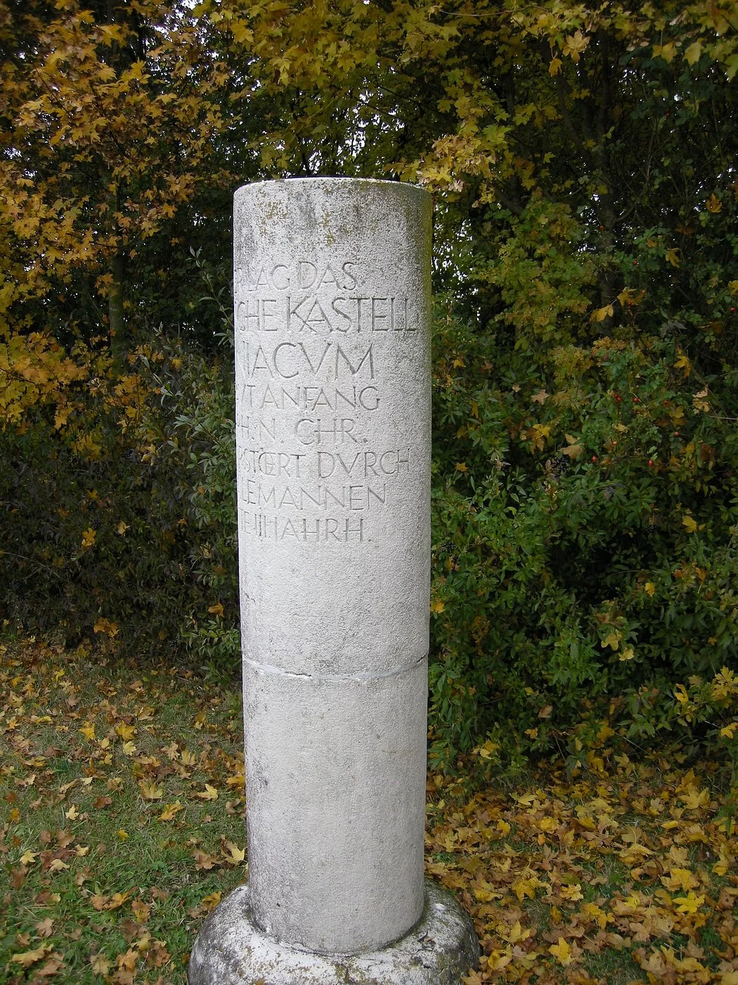 Die Inschrift auf dem Meilenstein benennt Iciniacum als den Namen für das Kastell und die dort stationierte Cohors III Bracaraugustanorum equitata. Nur das Steinkastell wurde in den Jahren 1879 und 1895 von Dr. H. Eidam im Auftrag der Reichslimeskommission näher untersucht, während das etwa 155 x 130 m messende Vorgängerkastell ein Ergebnis der Luftbildauswertung (1976) ist. Die zeitliche Einordnung geht von der Errichtung des Vorgängerkastells um 100 n. Chr. und dem Bau des folgenden Steinkastells in der Mitte des 2. Jahrhunderts aus.