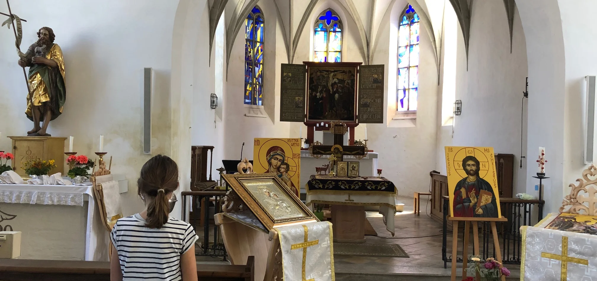 Grundsteinlegung (1425) durch Abt Kraft aus Kaisheim; Einfacher, flachgedeckter Bau mit eingezogenem fünfseitig geschlossenen Chor mit Sternrippengewölbe. Malereien am Chorgewölbe wohl 1447, Tafelbild am Hochaltar um 1480.