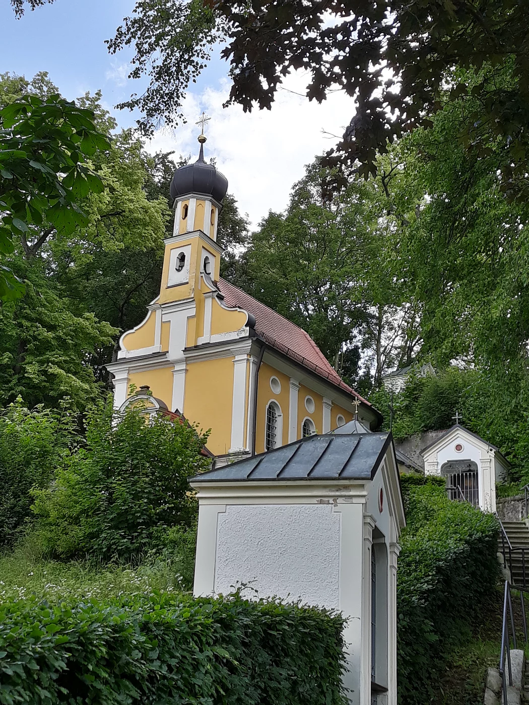 Nach einem Gelöbnis wurde 1720 eine Kreuzigungsgruppe und 1721 die Maria-Hilf-Kapelle am Kalvarienberg errichtet. Besonders sehenswert sind ein Madonnenbild (1723) und der Grabchristus (1735). Kreuzweg (1734) vom Fuße des Berges bis zur Kreuzigungsgruppe.