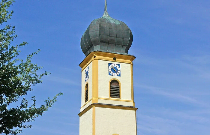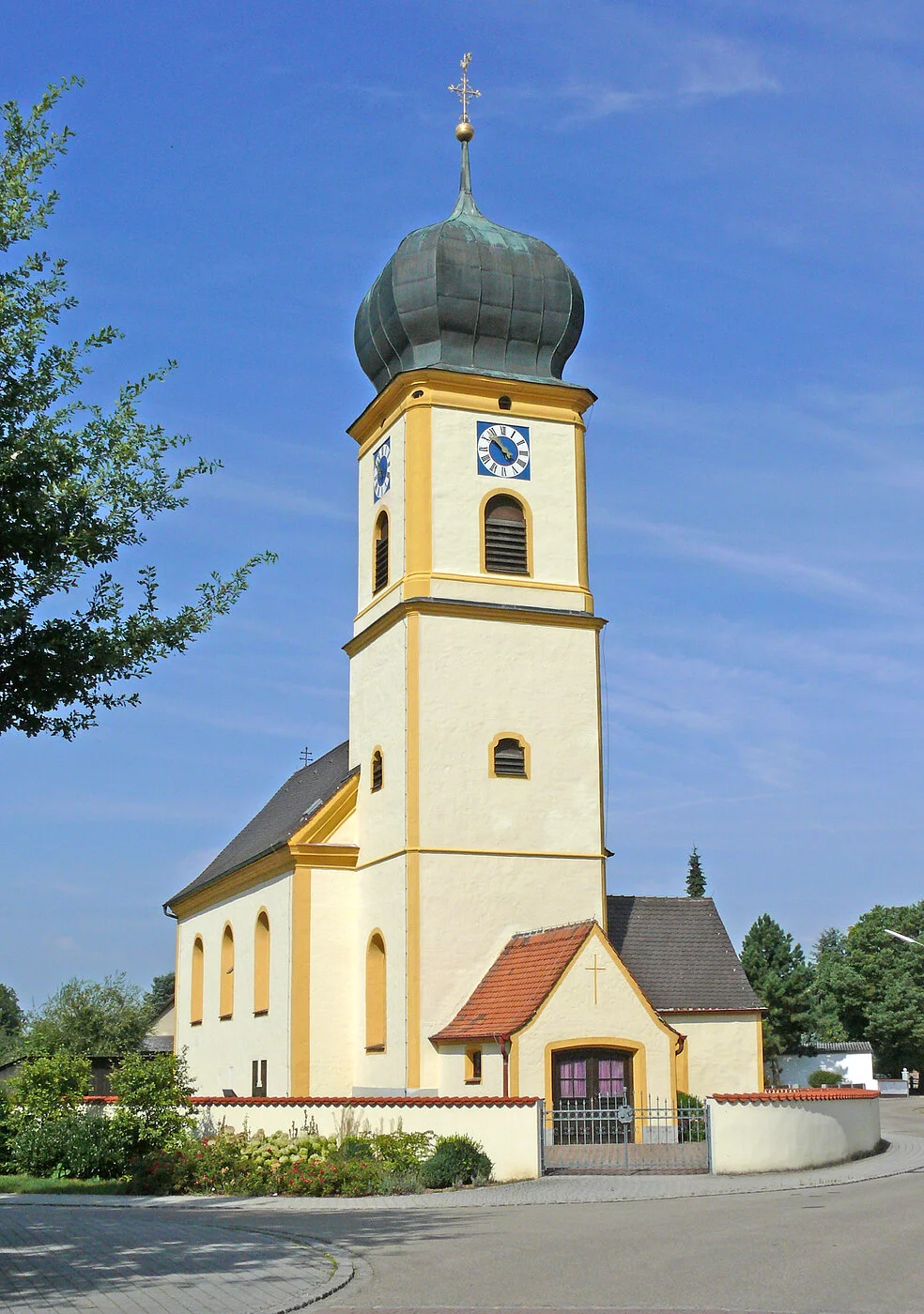 Von der romanischen Kirche, die ca. 1200 erbaut wurde, hat sich Quadermauerwerk beidseits des Chorbogens erhalten. Dieses Gotteshaus brannte 1580 weitgehend nieder und wurde 1581 wieder aufgebaut. Der Ingolstädter Stadtmaurermeister Michael Anton Prunthaller barockisierte 1737 die Kirche.