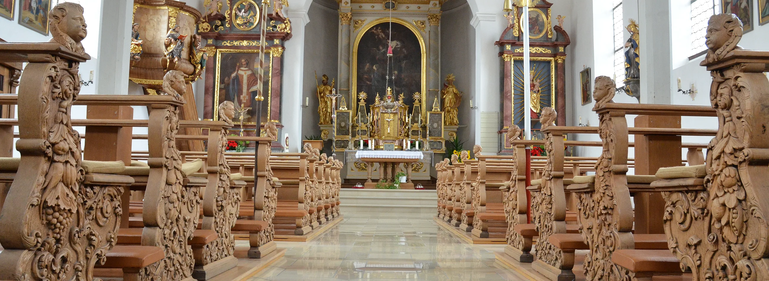 Der linke Seitenaltar wurde ebenfalls um 1650 gefertigt, der rechte Seitenaltar um 1715 bis 1720. Den Korpus der prachtvollen Kanzel aus Nussbaumholz, einer Frührokokoarbeit um 1730 bis 1740, zieren die Figuren der Evangelisten, den Schalldeckel der hl. Augustinus mit dem Kind, das mit einem Löffel das Meer ausschöpfen will. Schön geschnitzte Stuhlwangen aus Eichenholz und vier Holzreliefs an den Pultwänden der mittleren Bänke – dargestellt sind die Verkündigung, die Heimsuchung, die Flucht nach Ägypten und die hl. Familie in Nazareth – sind weitere Schmuckstücke des Gotteshauses.