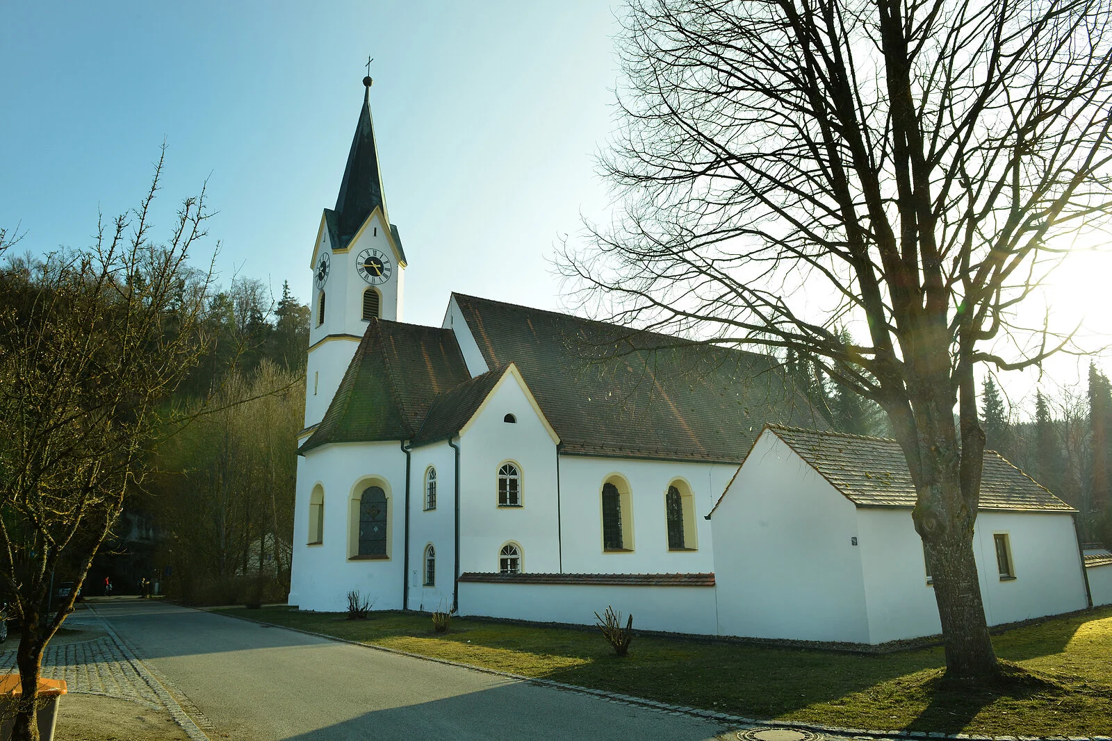 Aus den Vorgängerbauten der heutigen Barockkirche stammen der romanische Taufstein (12. Jh.) an der Kirchenrückwand, ein aus rotem Ton gebranntes Kruzifix um 1400 am Chorbogen und ein Holzrelief der hl. Anna selbdritt um 1500 auf dem rechten Seitenaltar. An den Kirchenwänden befinden sich zahlreiche Grabsteine und Epitaphien der Familie von Muggenthal: Die Muggenthaler, Besitzer der benachbarten Schlösser Neuenhinzenhausen (1557 bis 1704), Sandersdorf (1425 bis 1646) und Hexenagger (1528 bis 1724) hatten hier seit 1471 ihre Familienbegräbnisstätte. Besonders bemerkenswert sind die Grabsteine des Heimeran Muggenthaler (gest. 1471) an der Kirchenrückwand und des Heinrich von Muggenthal (gest. 1519) an der rechten Langhauswand; beide Steine zeigen die Verstorbenen in voller Rüstung in flachem Relief.