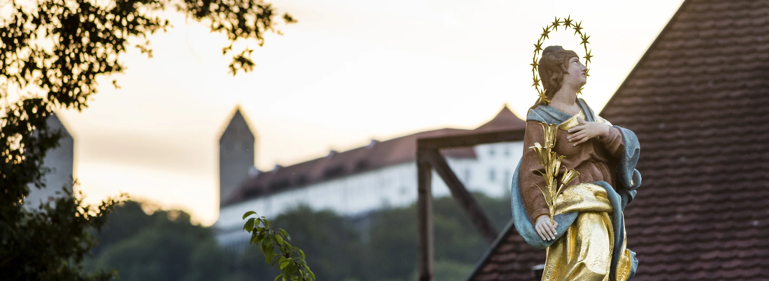 Im Schrein des viersäuligen Altars befindet sich eine ein Meter hohe, gefasste Holzgruppe der Pietà aus der Mitte des 15. Jahrhunderts.