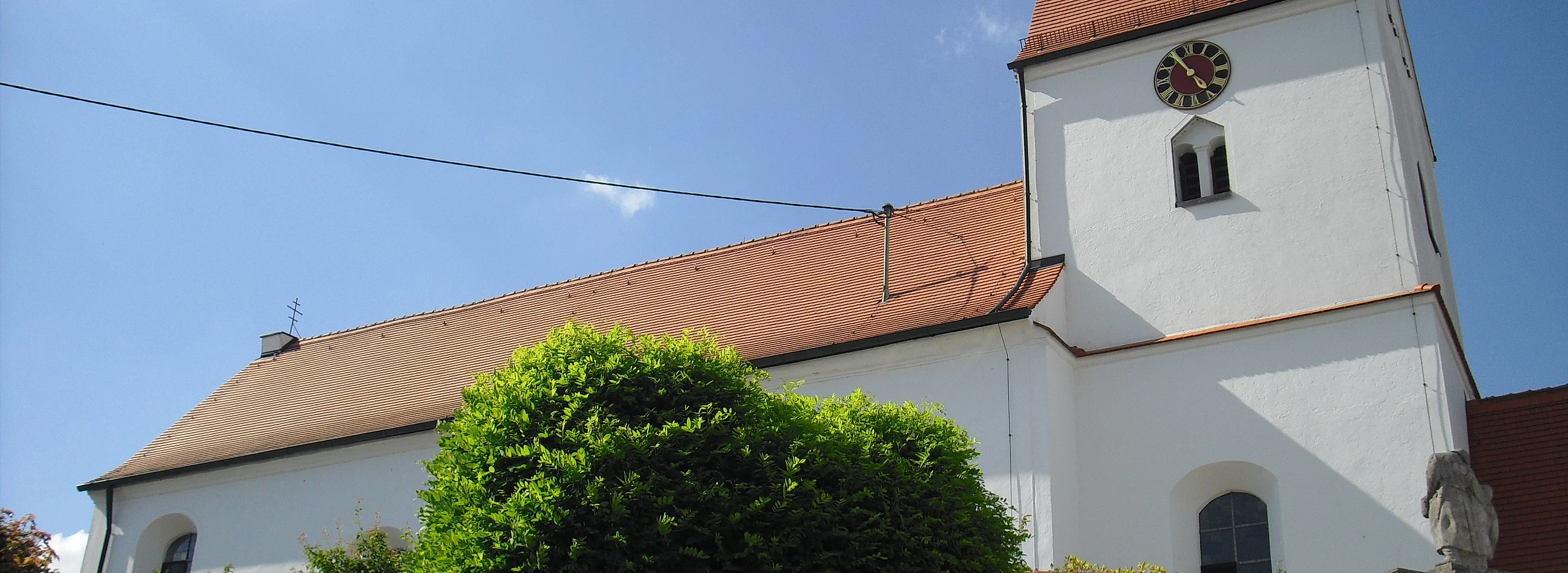 1527 errichtet, 1735 umgestaltet und 1820 nach Westen verlängert. Stuck, Langhausfresken (Johann Dominikus Murmann, Eichstätt) und Hochaltar um 1735. Seitenaltäre mit Rokokoaufbauten und Figuren aus Mitte des 18. Jahrhunderts.