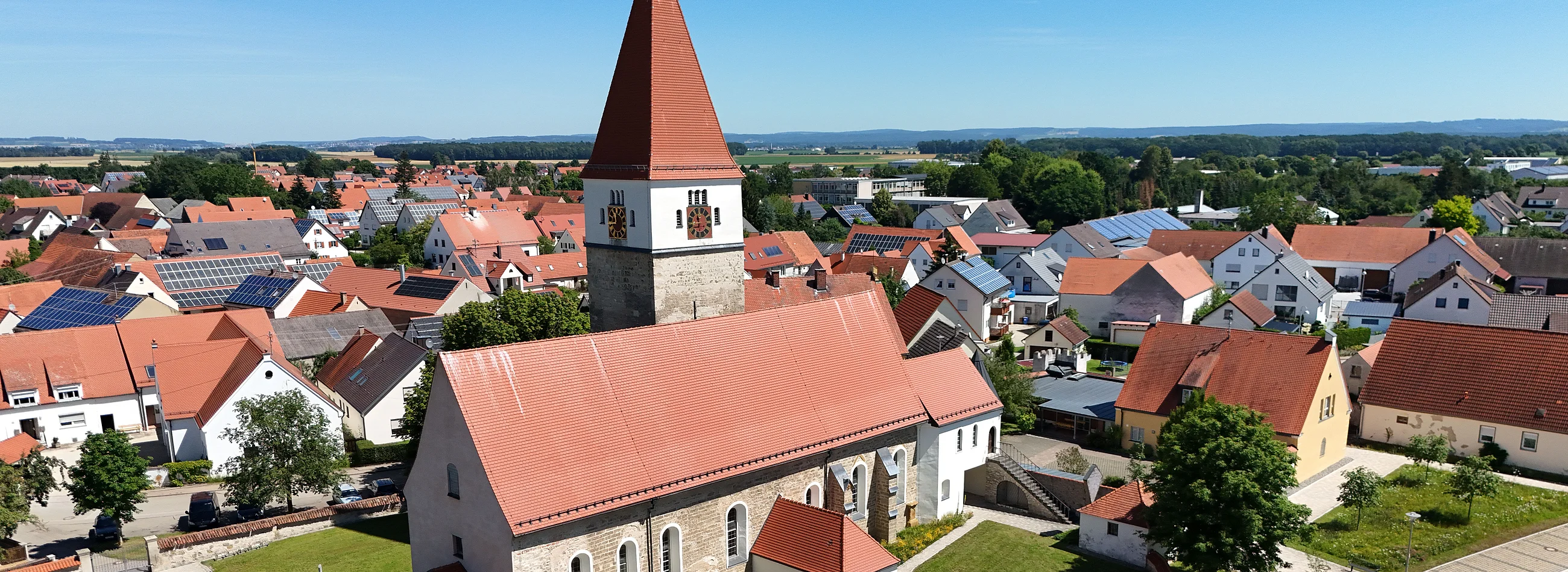 Erste urkundliche Erwähnung einer Kirche im Jahr 760 in der Schenkungsurkunde des Frankenkönigs Pippin an das Kloster Fulda. Wie die heutige Mauer noch erahnen lässt, bildete die langgestreckte Anlage und der quadratische Turm an der Nordseite mit Pfarrhof und Ostturm einst ein Befestigungssystem. Fresken und Altarbilder sowie Gemälde aus der Mitte des 18. Jahrhunderts werden dem Eichstätter Maler Johann Michael Zink zugeordnet.