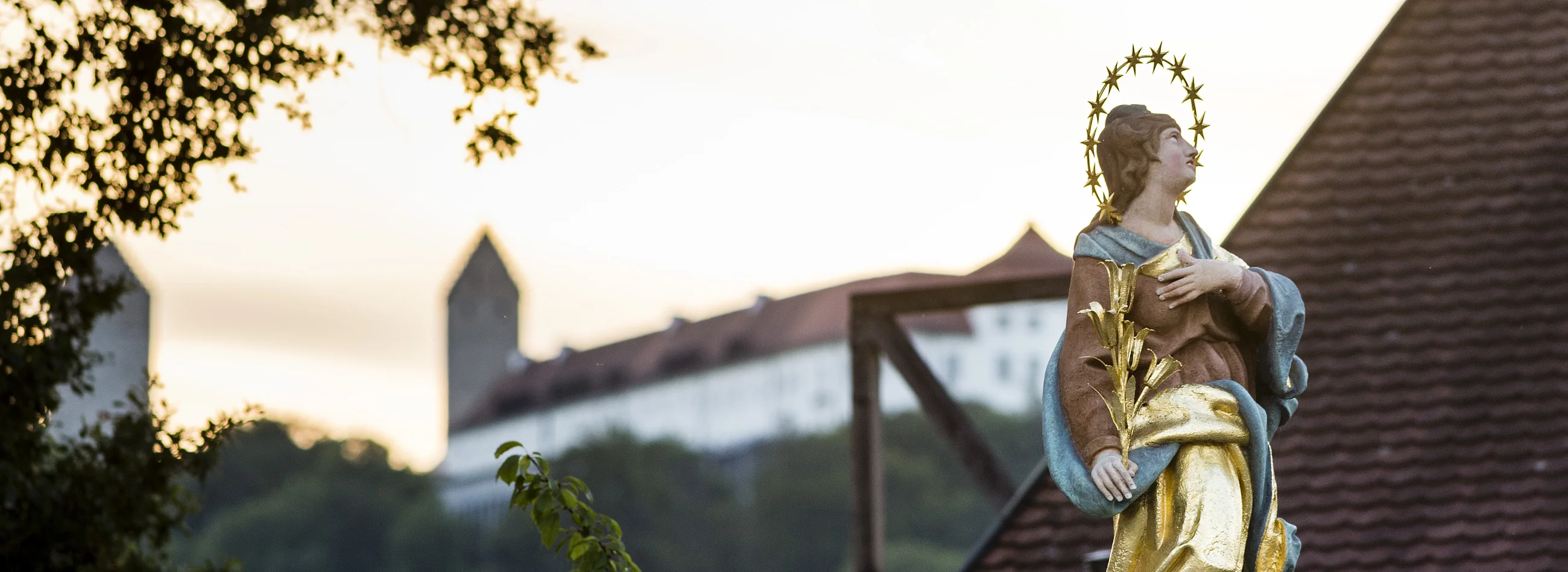 Der Kirchturm mit Treppengiebeln und Satteldach ist mittelalterlich, in ihm hängen vier Glocken, drei von 1950 und eine, die Ulrichsglocke, von 1689. - Die Pfarrei wird seelsorgerlich vom Kloster Plankstetten betreut.