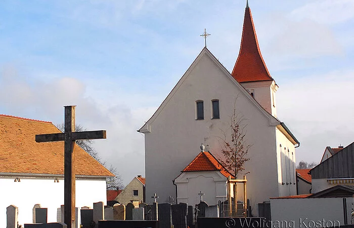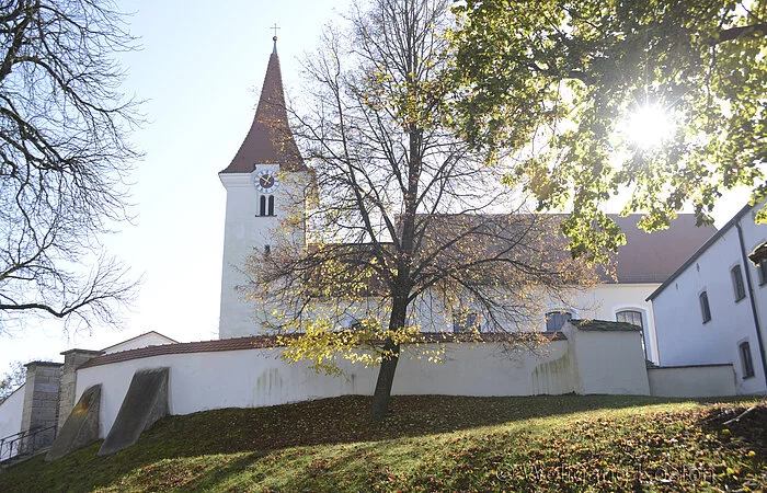 Auf den frühbarocken Seitenaltären (um 1650) stehen spätgotische Figuren, rechts Johannes Ev. (um 1475), links die hl. Maria (um 1520); beide Schnitzwerke sollen aus dem Kloster Rebdorf stammen, ebenso das barocke Kruzifix (um 1700) gegenüber der Kanzel. Skulpturen der Spätgotik finden sich auch beidseits des Chorbogens - rechts ein Bischof (um 1480), links die hl. Walburga (um 1500) - und in einer Nische in der rechten Langhauswand - eine Steinmadonna, die 1891 - 1935 den Westgiebel und dann bis 1980 den Vorraum der Kirche schmückte. Bemerkenswerte Gemälde der Kirche sind eine Ansicht von Böhmfeld (bezeichnet 1760) mit den Schutzheiligen Bonifatius, Willibald und Walburga links neben der Kanzel und der vom Eichstätter Johann Adam Weber 1794 gemalte Kreuzweg.