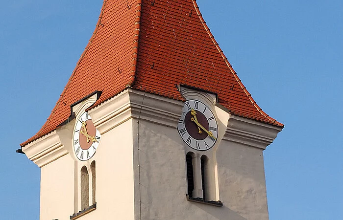 Er wurde 1804 aus dem sog. Kaisheimer Haus in Ingolstadt, einer Niederlassung der Zisterzienserabtei Kaisheim bei Donauwörth, erworben. Der 1756 geweihte Altar dürfte von dem Ingolstädter Schreiner Johann Michael Zängl gefertigt worden sein. Das Altarblatt, das die Erscheinung Mariens vor dem hl. Bernhard v. Clairvaux, dem größten Heiligen des Zisterzienserordens, zeigt, ist vom Ingolstädter Maler Johann Evangelist Hölzl signiert (1755). Die großartigen Altarseitenfiguren des hl. Bernhard (links) und des hl. Benedikt (rechts) sind wohl dem Dillinger Meister Johann Michael Fischer zuzuschreiben. Spätrokokoschöpfungen (um 1794) sind die Kanzel, die geschnitzten Stuhlwangen und die durchbrochen gearbeitete Balustrade der ehemaligen Kommunionbank, die 1974 für den Volksaltar und den Ambo verwendet wurde.