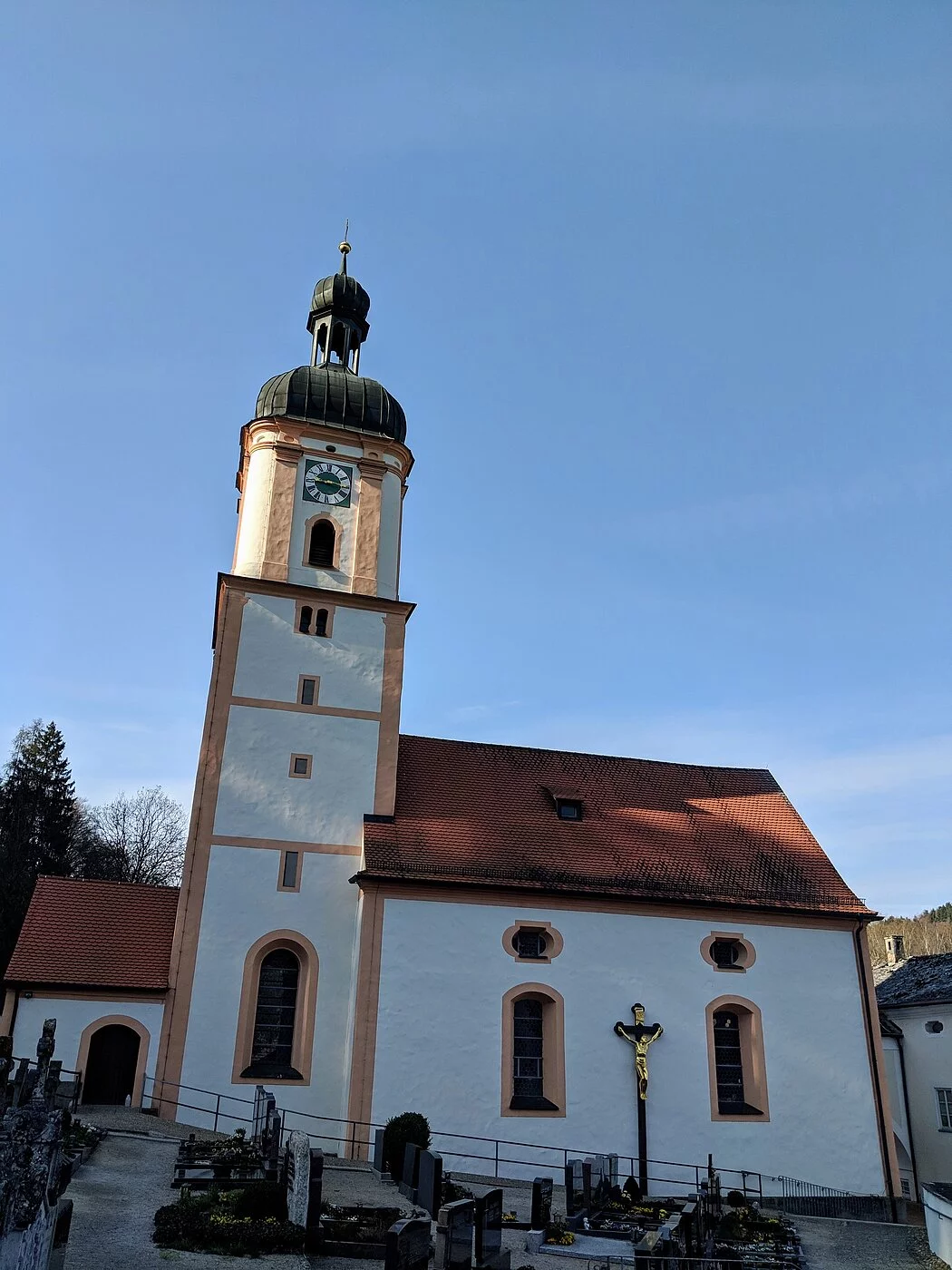 Diese Bautengruppe liegt außerhalb von Riedenburg einsam im malerischen Schambachtal. Die Kirche zählt zu den Urpfarreien des Gebiets und war bis 1922 Pfarrkirche von Riedenburg. Der stattliche Pfarrhof, der mit seinen Wirtschaftsgebäuden den Charakter eines Gutshofes besitzt, schließt sich ihr auf der Westseite eng an. Neben diesen Anlagen, die unmittelbar zur Pfarrei gehören zählt auch der ummauerte, die Kirche umfassende, Friedhof. Das Ensemble bildete auch den schulischen Mittelpunkt für eine größere Zahl von Weilern, kleinen Kirchdörfern und den Marktort Riedenburg. Noch heute finden Gottesdienste in der Kirche statt. Der Pfarrhof wird gerne für kulturelle Veranstaltungen genutzt.