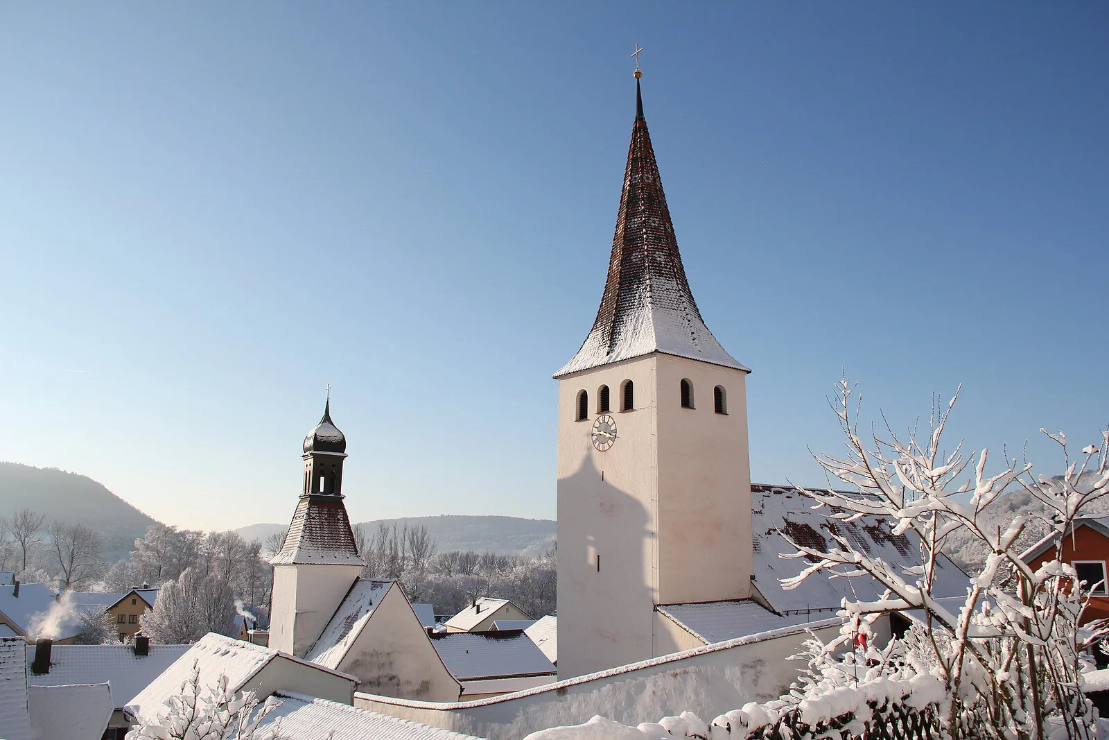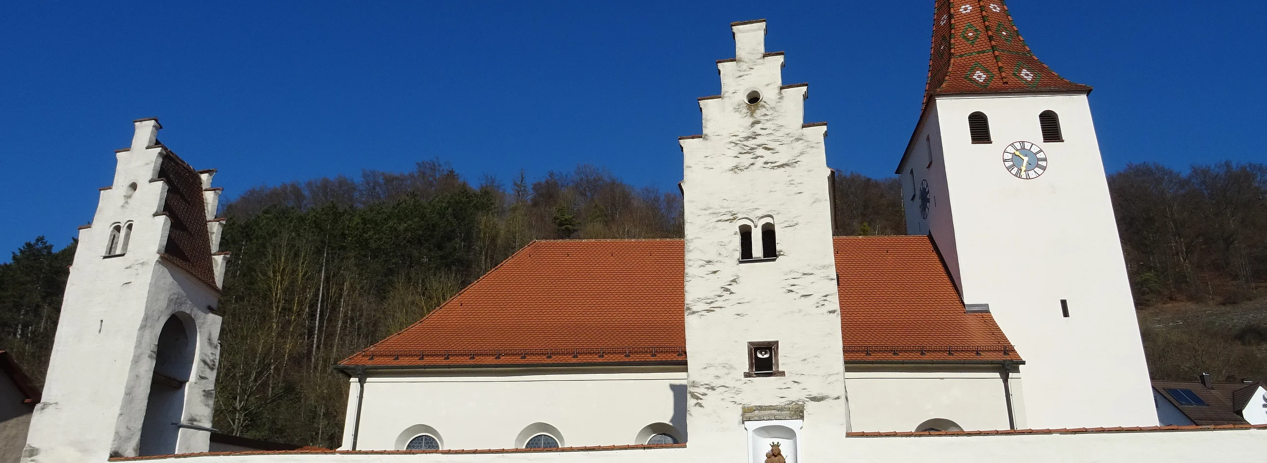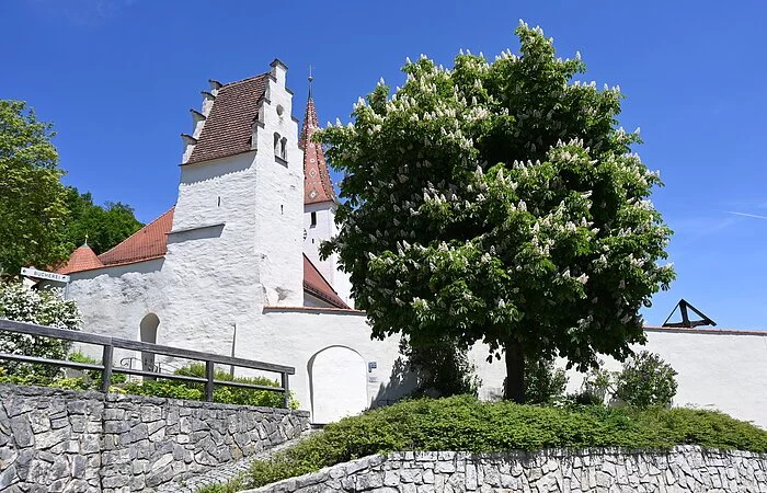 Kinding, als Chunimuntinga 900 erstmals urkundlich erwähnt, gehört zu den ältesten Siedlungen des Eichstätter Raums und zu den Urpfarreien des Bistums. Die Untergeschosse des Kirchturms gehen in romanische Zeit zurück, während Kirche und beide Friedhöfe erst später entstanden (geweiht 1357).