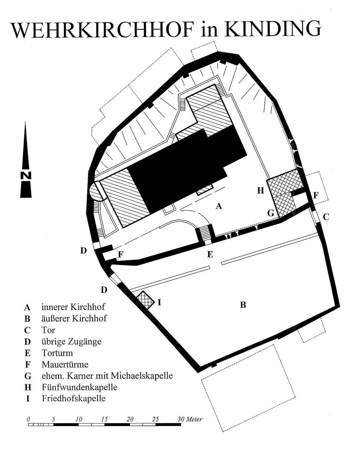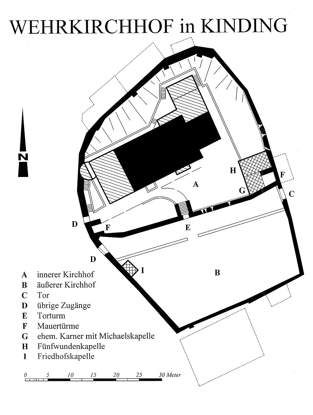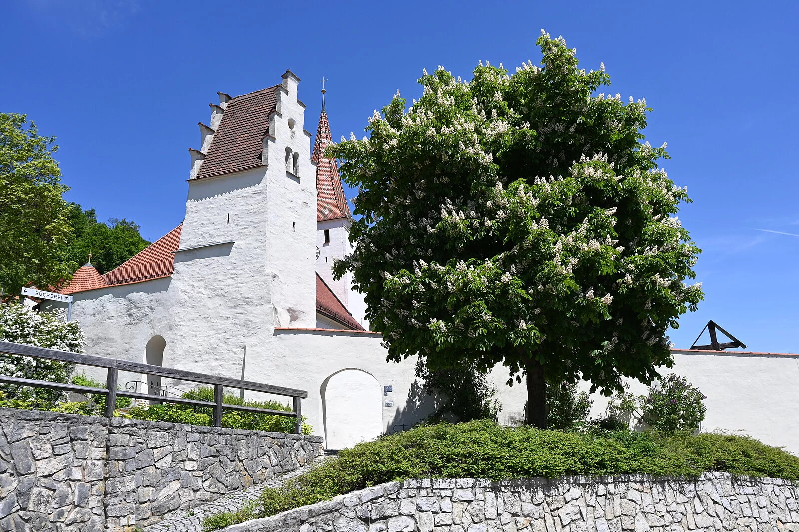 Kinding, als Chunimuntinga 900 erstmals urkundlich erwähnt, gehört zu den ältesten Siedlungen des Eichstätter Raums und zu den Urpfarreien des Bistums. Die Untergeschosse des Kirchturms gehen in romanische Zeit zurück, während Kirche und beide Friedhöfe erst später entstanden (geweiht 1357).
