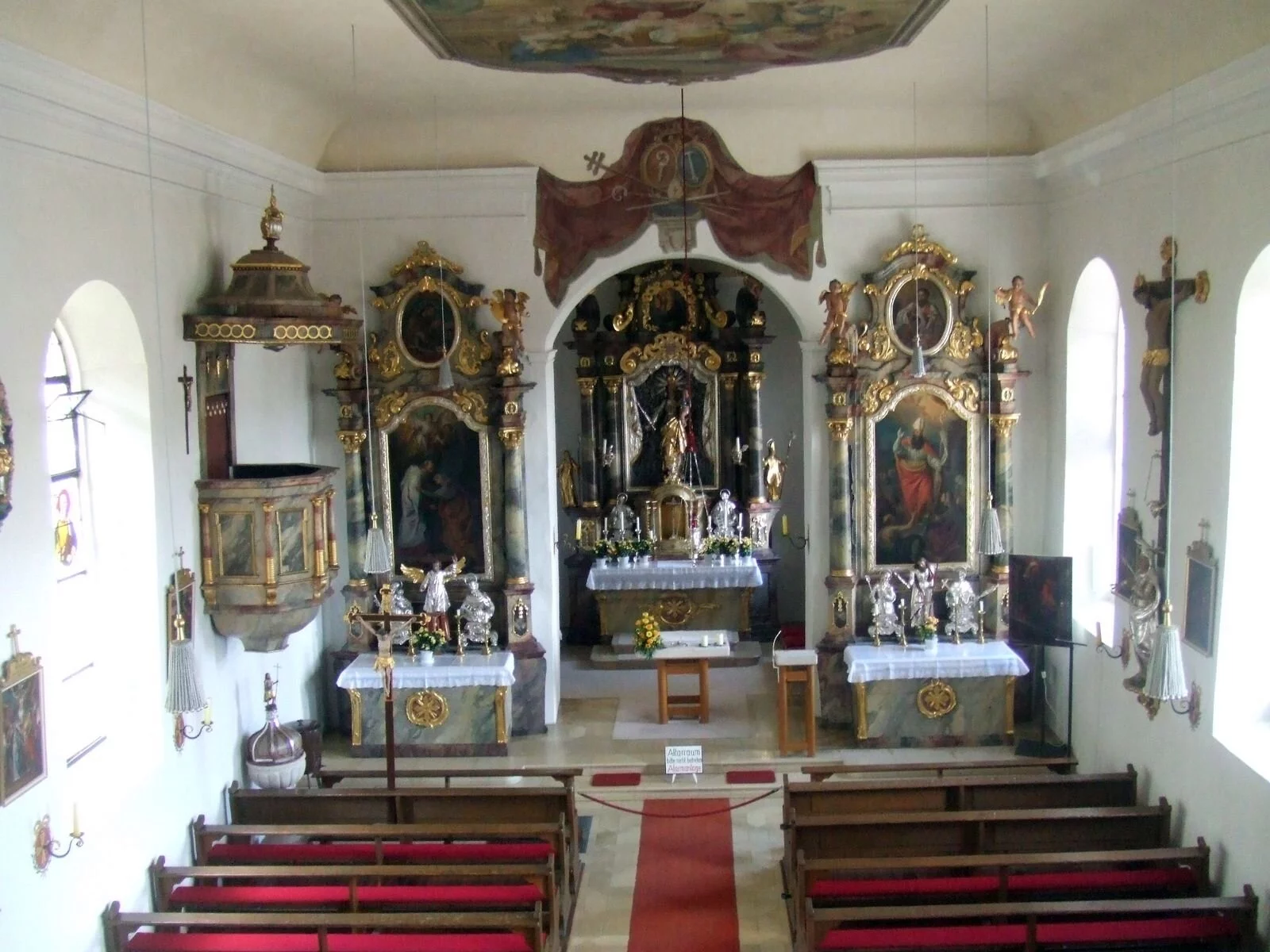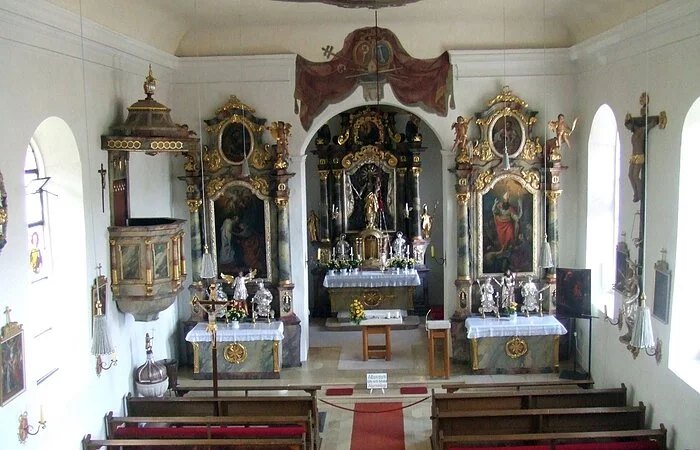 Die Kirche wird im 17./18. Jahrhundert barock ausgebaut und ausgestattet (Kanzel 1680, Seitenaltäre 1732, Hochaltar 1738) und 1908 erweitert.