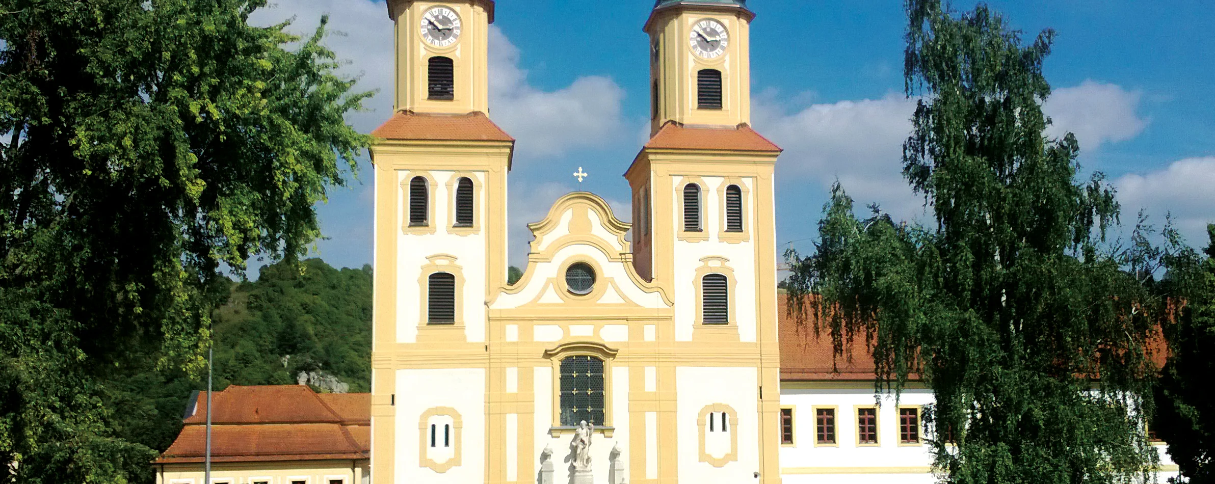 Von den mittelalterlichen Klostergebäuden hat sich noch der südlich an die Kirche anschließende alte Konventbau mit spätgotischem Kreuzgang (15. Jahrhundert) und dreischiffigem gotischen Saal (wohl ehemals Refektorium oder Kapitelsaal) erhalten; allerdings wurde die Anlage in der Barockzeit erweitert und überbaut, unter anderem der Südflügel zur Prälatur (barocke Südfassade 1735 von Matthias Seybold) ausgebaut. Östlich von Kirche und Kreuzgang entstand 1715ff. der neue, 183 m lange Konventbau nach den Plänen des Eichstätter Hofbaudirektors Gabriel de Gabrieli, insbesondere auch ein barocker Arkadenhof mit drei Flügeln (sog. Gabrielihof).