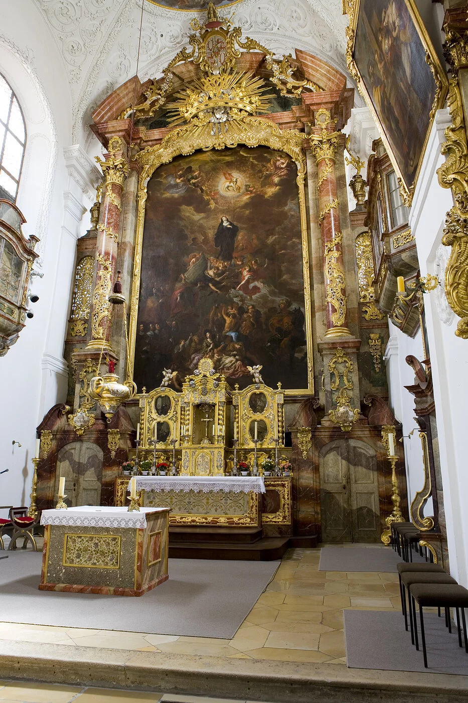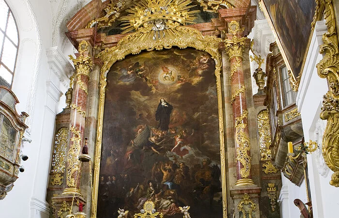 Sehenswert: Reiche Innenausstattung, Hochaltargemälde von Joachim Sandrart und Johann H. Schönfeld, Gruftkapelle der Hl. Walburga mit mittelalterlicher Grabanlage (um 1450/60), unzählige Votivbilder und - gaben, Klosterladen.