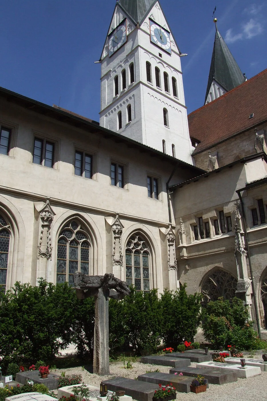 Der Kreuzgang umschließt den Kreuzhof, in dem ebenfalls die Ruhe und Abgeschiedenheit eine Stimmung der Einkehr und Meditation möglich macht. Es ergeben sich malerische Perspektiven zu den romanischen Domtürmen, dem frühgotischen Ostchor und der Spätgotik des Kreuzgangs. Der Kreuzhof dient seit 1958 als Begräbnisstätte für Mitglieder des Domkapitels. Die moderne Plastik stammt von Blasius Gerg aus dem Jahr 1961 und hat den Titel: "Der gute Hirte". Die schlichte, expressive Form zeigt Jesus als guten Hirten, Lamm und Hirte ergeben die Form eines Kreuzes, was zugleich auf den Gekreuzigten verweist.