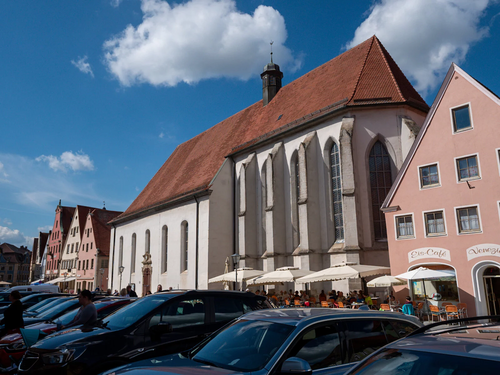 Der heutige Festsaal der Stadt ist in seinen größten Teilen aus einem Karmeliterkloster hervorgegangen, das 1325 von einem Heinrich, Herr zu Heydeck gestiftet wurde. Heinrich war Domherr in Eichstätt und Würzburg und ein Parteigänger Ludwigs des Bayern. Die Klosterkirche entstand an einer hervorragenden Stelle der mittelalterlichen Stadt. Ihre Südfront liegt am größten Platz der Stadt, dem ehemaligen Holzmarkt, der heutigen Luitpoldstraße.