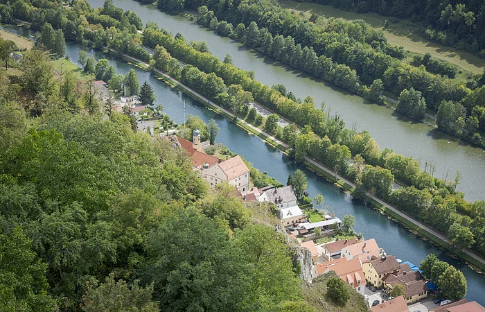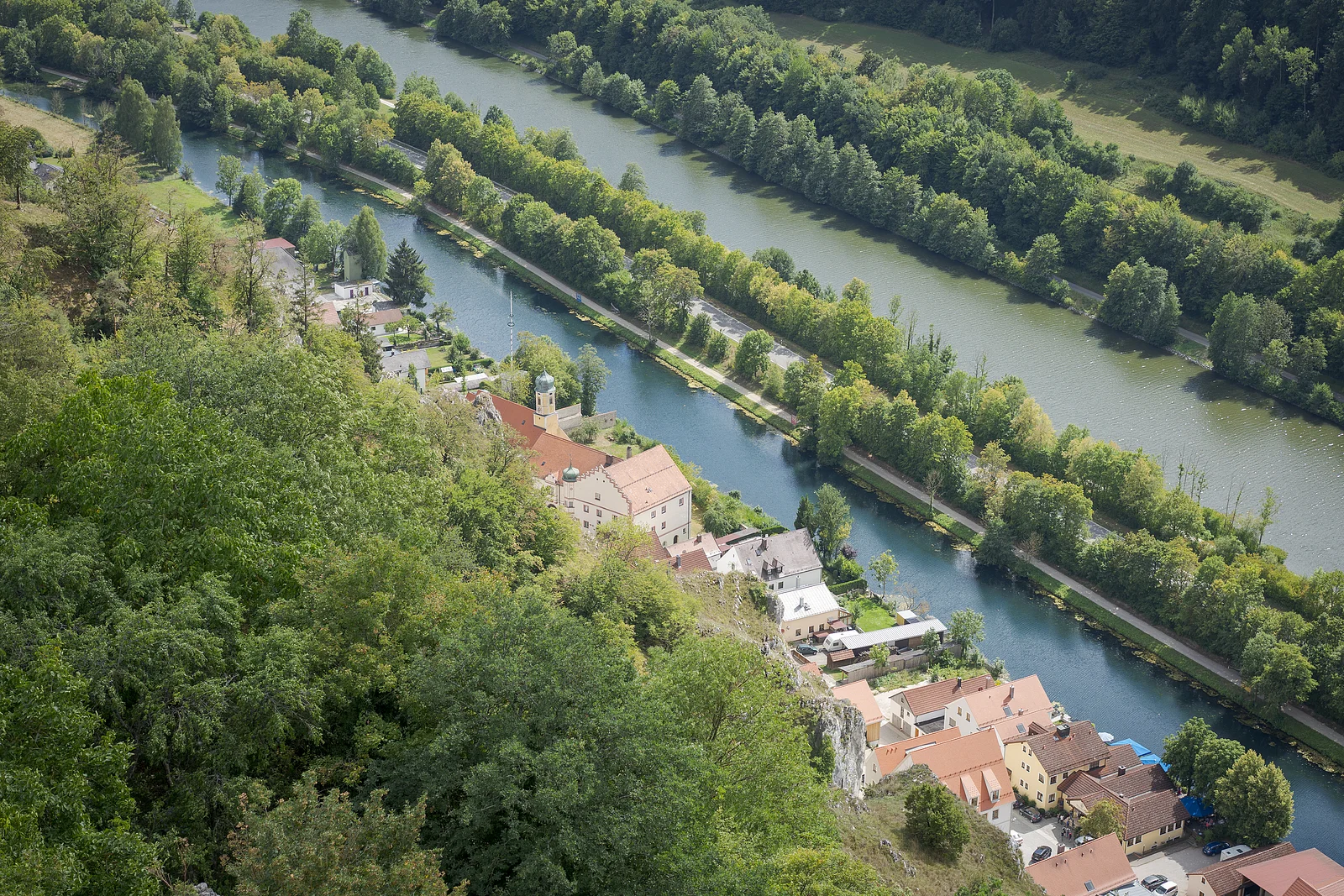 Doch das ehrgeizige Projekt hatte noch ein viel gravierenderes technisches Problem zu meistern: die europäische Wasserscheide, die die Flusssysteme der Nordsee von denen, die ins Schwarze Meer fließen, trennt. Von Bamberg aus mussten bis zur Scheitelhaltung zwischen Burgthann und NeumarktSengenthal 187 m Anstieg überwunden werden. Danach fällt der Kanal bis Kelheim wieder um 80 m ab.