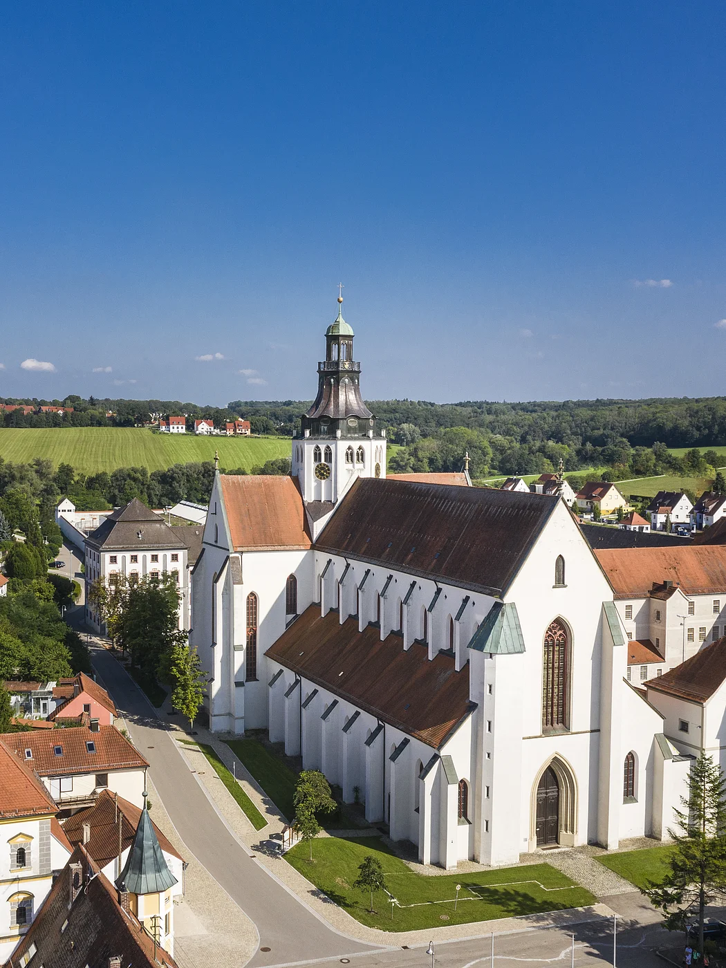 Das Marienmünster ist mit einer Länge von 80,5 m einer Breite von 27,7 m und einer Innenhöhe von 24 m (Mittelschiff) die größte Klosterbasilika und das monumentale Bauwerk des 14. Jahrhunderts in Bayerisch Schwaben. Erbaut in den Jahren zwischen 1352 und 1387 unter Abt Ulrich III. Niblung ist ihr Grundriss das lateinische Kreuz mit seinen verschieden langen Balken. Da die strengen Ordensregeln der Zisterzienser keine Türme zuließen sondern nur Dachreiter erlaubten, weist die Kirche nur einen 46 m hohen Vierungsturm auf.