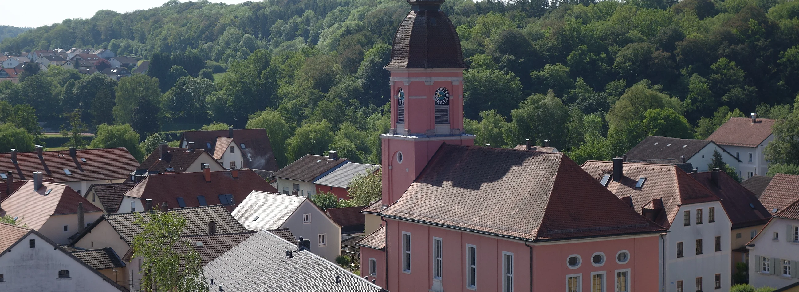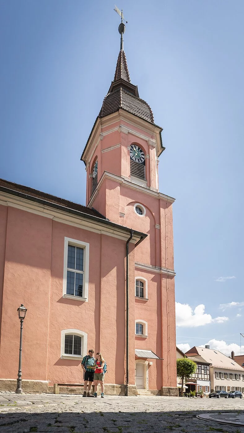Die evangelische Markgrafenkirche wurde 1757 anstelle einer Marienkirche (Frühmesskapelle) von Johann David Steingruber, dem Baumeister des Ansbacher Markgrafen Carl Wilhelm Friedrich, errichtet.