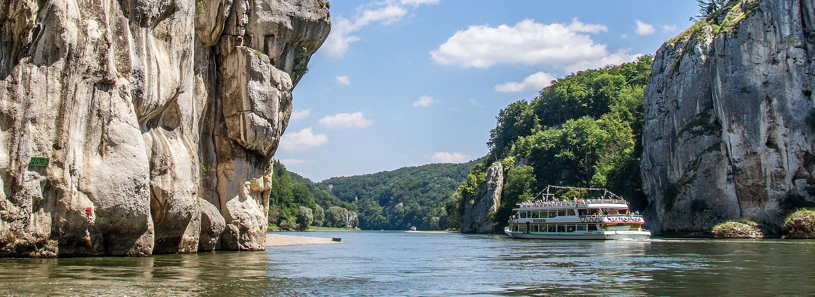 Vor 150 Millionen Jahren bedeckte ein flaches, subtropisches Meer das Kelheimer Gebiet. Korallen und Schwämme bauten aus Kalk mächtige Riffe auf – die heutigen Felswände der Weltenburger Enge. Vor rund 200.000 Jahren grub sich ein Nebenarm der Urdonau durch das Kalkgestein und schuf so das heutige Flussbett der Donau. Auf einer Strecke von rund fünf Kilometern strömt der Fluss zwischen den bis zu 70 Meter aufragenden Kalkfelswänden hindurch: ein eindrucksvoller Anblick, den man am besten vom Schiff oder Boot aus genießt.