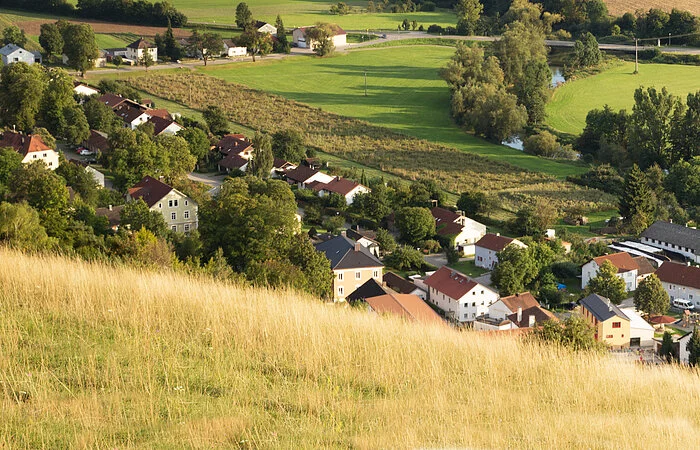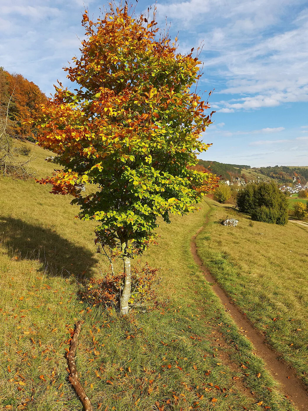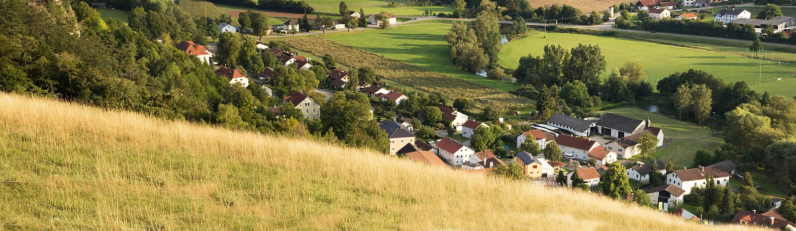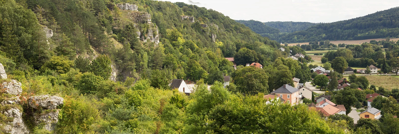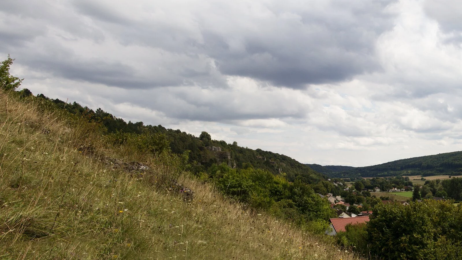Der großflächige Trockenhang, an dessen Fuß sich der Ort Obereichstätt schmiegt, wird von zahlreichen Dolomitfelsen geschmückt.
