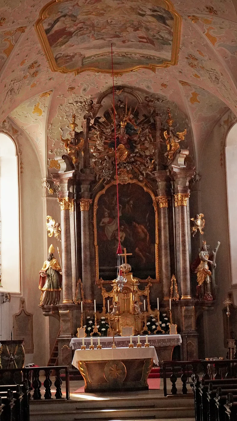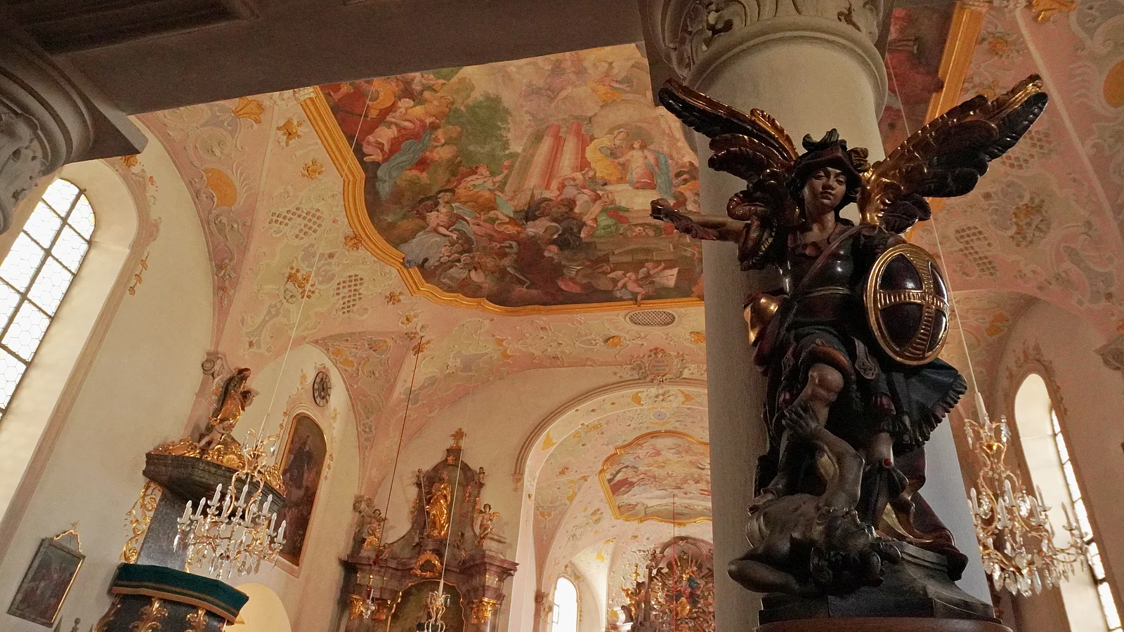 Die Bernhardsgruppe stellt einen hohen künstlerischen Wert dar. Dargestellt wird, wie Christus die Hände vom Kreuz löst und sie dem heiligen Bernhard entgegen streckt. Sie ist vermutlich dem spätgotischen Bildhauer Gregor Erhard zuzuschreiben.