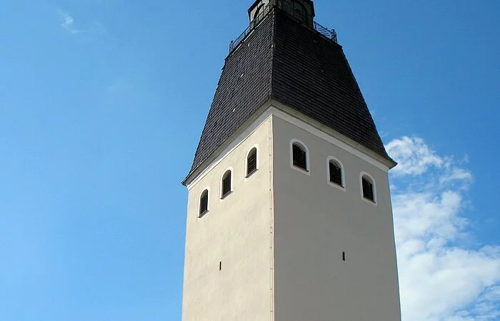 Lage und Außenbau: St. Lorenz bildet den Mittelpunkt der Berchinger Vorstadt an beherrschender Stelle. Ihr mächtiger Turm öffnet sich im Obergeschoß auf allen Seiten in drei Klangarkaden. An der Nordseite des Turmes ist die Sakristei angebaut.