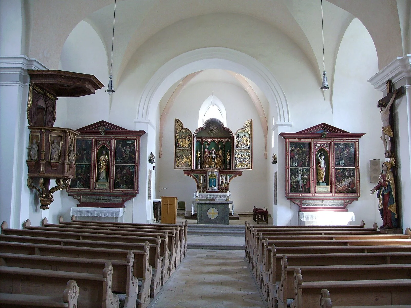 Orgel und Glocken: Die Johann-Michael-Bittner-Orgel wurde vom Bayerischen Landesamt für Denkmalpflege (BLfD) als historische Denkmalorgel eingestuft. Die Orgel wurde im Jahr 1850 vom Nürnberger Orgelbauer Johann Michael Bittner erbaut. Sie ist mit ihrem freistehenden Spieltisch mit Blickrichtung zum Altar, ihrer mechanischen Traktur und ihrem vollständig erhaltenen Balghaus mit einer Keilbalganlage und insgesamt drei originalen Keilbälgen eine Besonderheit unter den Denkmalorgeln im süddeutschen Raum. Die Orgel wurde von der Orgelbaufirma Sandtner aus Dillingen aufwendig restauriert. Die festliche Orgelwiederweihe fand am Sonntag, 25. September 2011 statt.