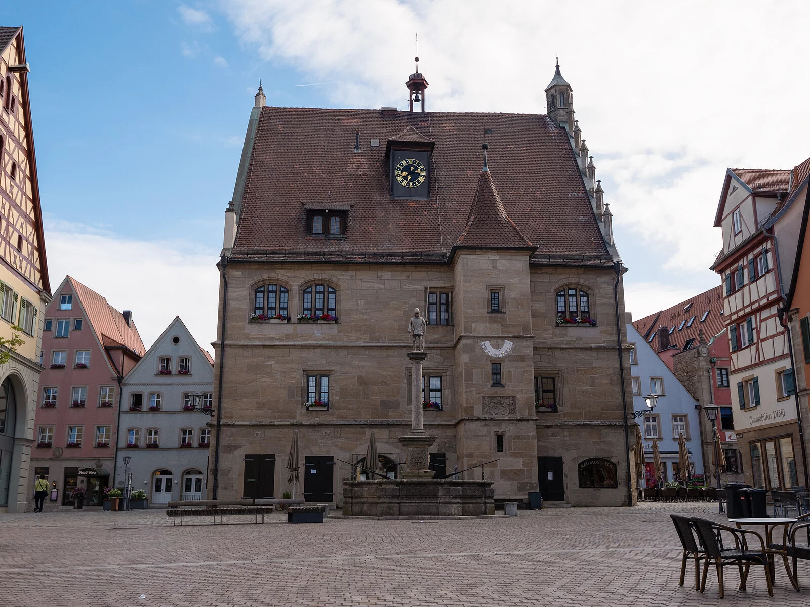 Der dreigeschossige Sandsteinquaderbau wurde auf der Höhe der reichsstädtischen Entwicklung der Stadt zwischen 1470 und 1480 (Turmanbau 1567) errichtet. Der Standort markiert den Kreuzungspunkt der durch Weißenburg verlaufenden Fernhandelsstraßen. Im ersten Stock befindet sich der Söller und im zweiten Stock die Sitzungsräume des Rates sowie des Stadtgerichts (keine freie Besichtigung möglich). Umfangreiche, grundlegende Sanierung in den Jahren 2002 bis 2004.