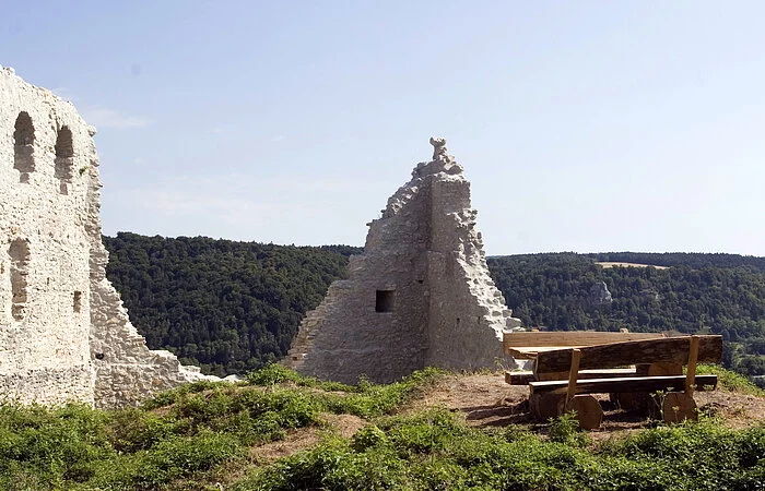 Gegliedert ist die Anlage in die als Ruine gut erhaltene Hauptburg und eine durch einen tiefen und breiten Graben abgetrennte und nur mehr als Bodendenkmal erhaltene Vorburg. Am Westzugang der Burg befindet sich eine vom Fremdenverkehrsverein errichtete Tafel mit detaillierten historischen Fakten (z. B. Besitzerwechsel, Linien der Besitzer, Blüte und Untergang).
