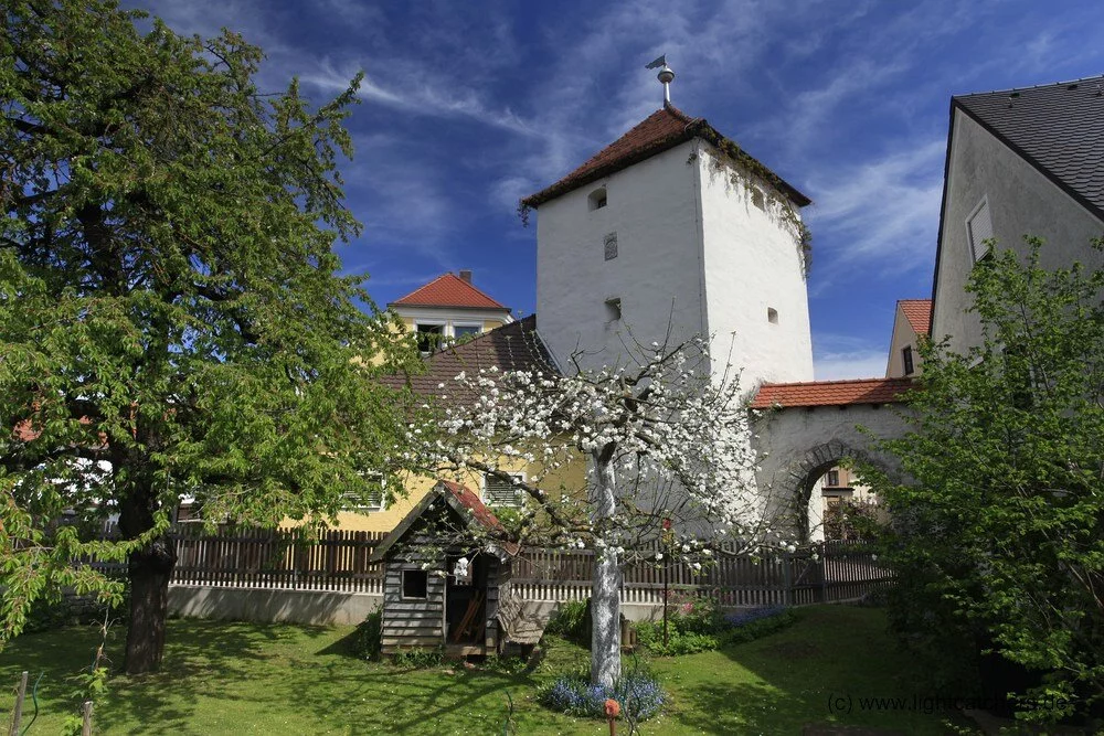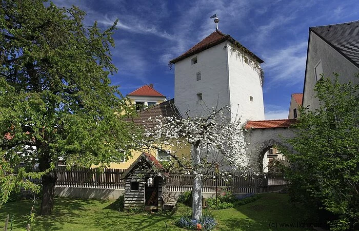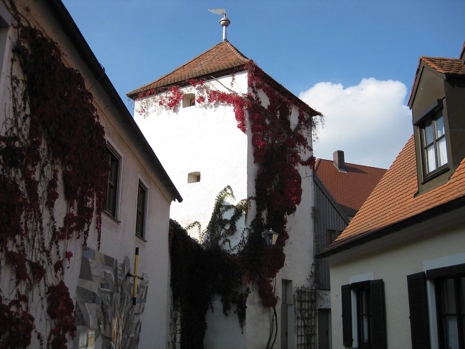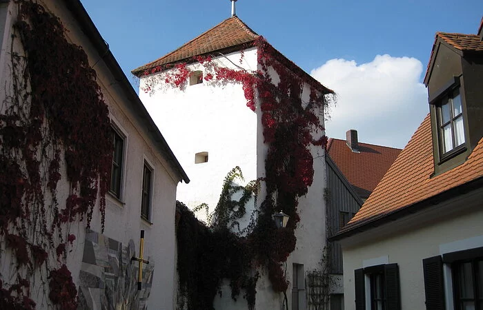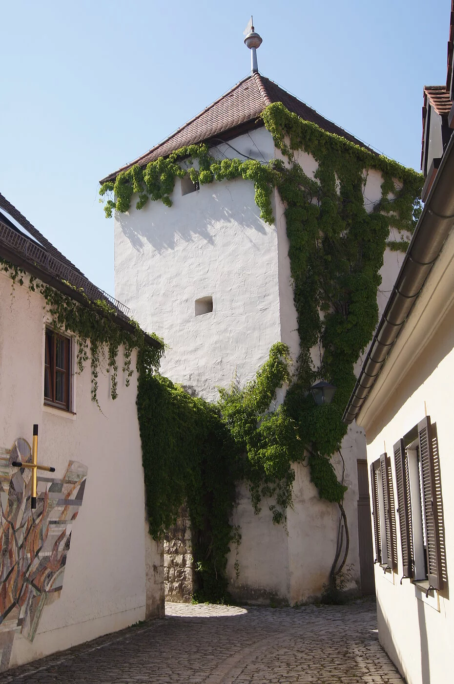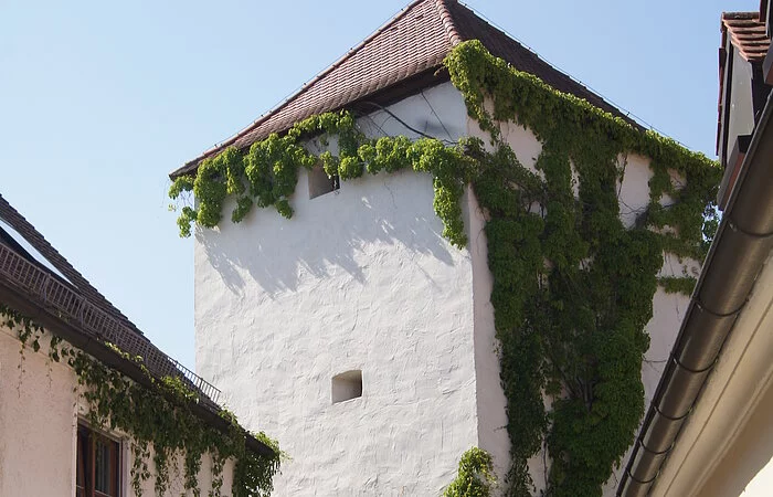 Im Mittelalter war zeitweise die private Einzelweide verboten. Stattdessen wurden von der Stadt für die verschiedenen Haustierarten eigene Hirten bestellt. In diesem Turm war demnach - auch hier gilt "nomen est omen" - der Sauhüter untergebracht. Das Wappen des Eichstätter Fürstbischofs Gabriel von Eyb weist auf den Erbauer dieses Eckturms hin.