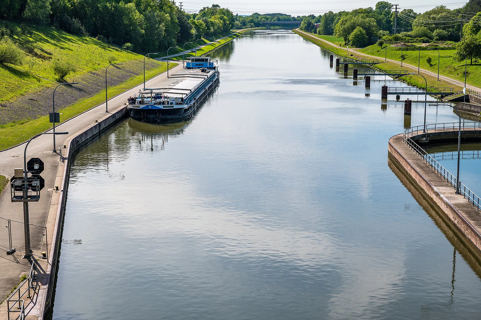 Die Schleuse ist mit einer Fallhöhe von 24,67 m eine der größten Schleusen und als Sparschleuse gebaut. In der Nähe von Pierheim befindet sich mit 406,0 m über NN der höchste Punkt vom Main-Donau-Kanal. An dieser Stelle befindet sich ein Bauwerk. Der Schleusenweg lädt ab der Schleuse Hilpoltstein zum Spazieren im Umland ein.