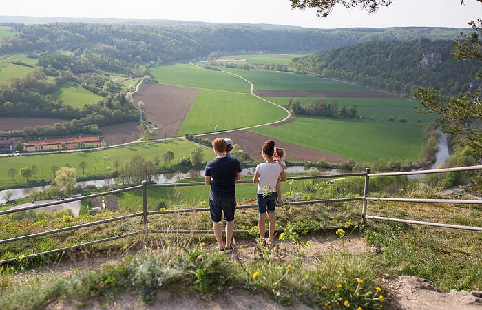 Vom Gelände aus bietet sich ein fantastischer Ausblick aufs Altmühltal und die Arnsberger Leite.