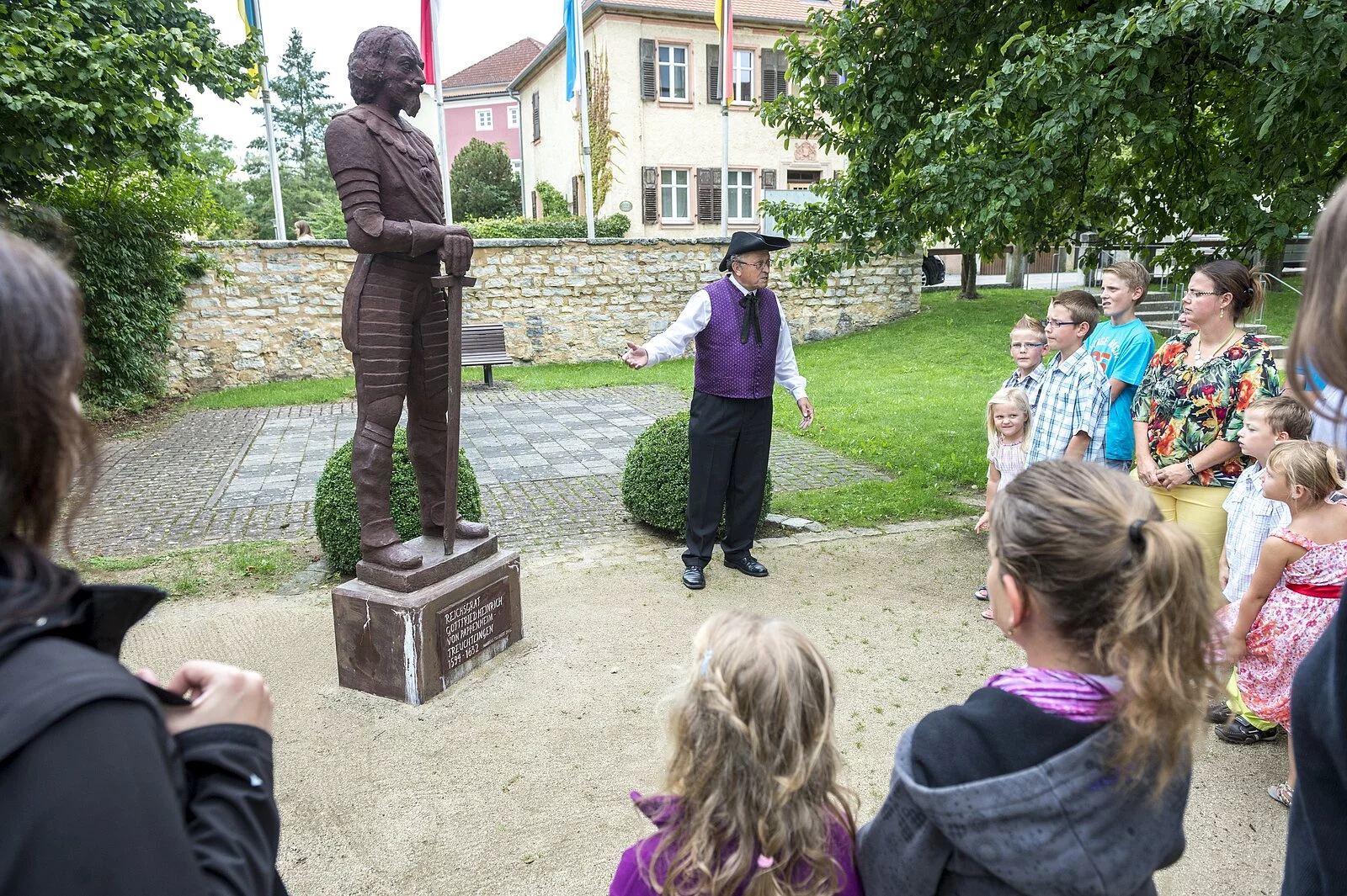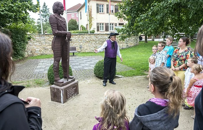 Darüber hinaus ist im Schlossgraben eine geologische Besonderheit zu sehen! Ausgestellt ist eine Kalkfläche, auf der Auswurfmassen eines Meteoriten-Einschlags im nahegelegenen Nördlinger Ries dunkelbraune „Schlitterspuren“ hinterlassen haben.