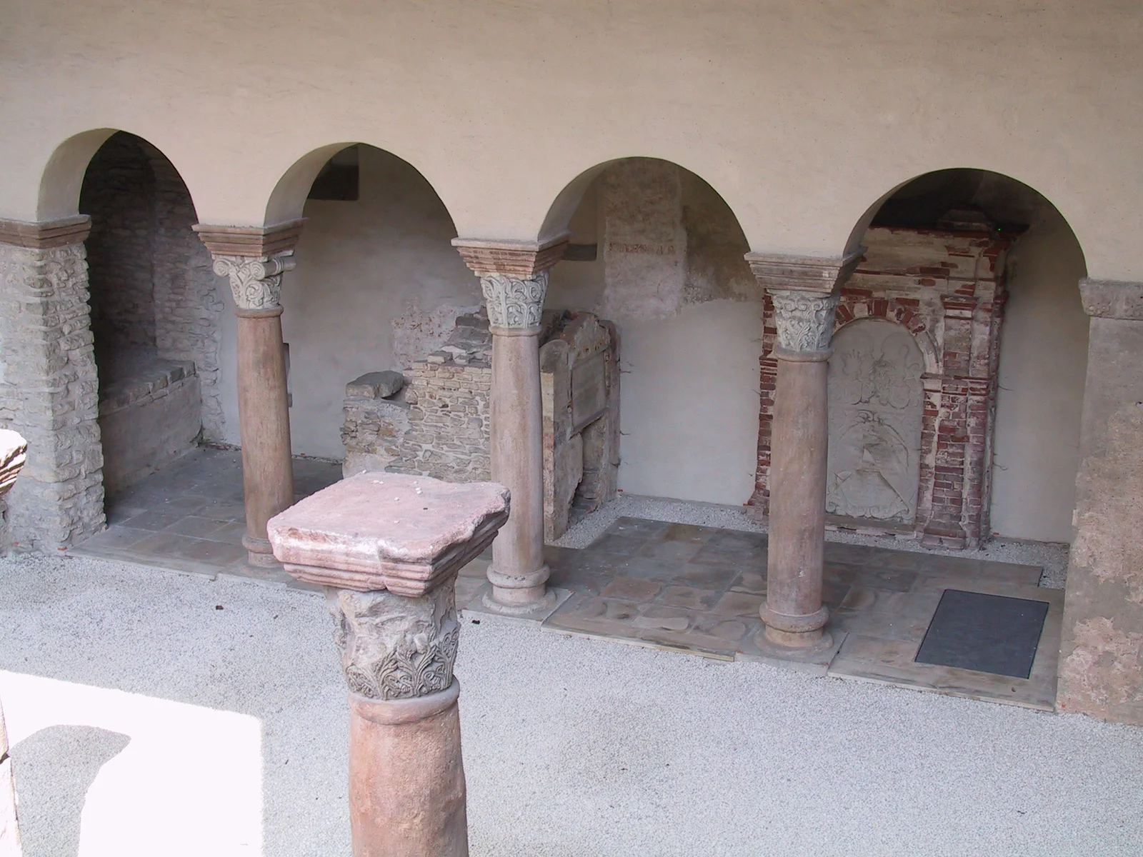 Grundmauern und Reste von fünf übereinander liegenden Kirchbauten seit dem 6. Jahrhundert. Die verschiedenen Epochen umfassen einen Zeitraum von etwa 650 n. Chr. bis zum Abbruch der Basilika im Jahre 1783. Bei den Ausgrabungen entdeckte man Siedlungsspuren, die bis in die Mittelsteinzeit (ca. 8000 bis 500 v. Chr.) reichen, sowie Reste der keltischen und römischen Epoche.