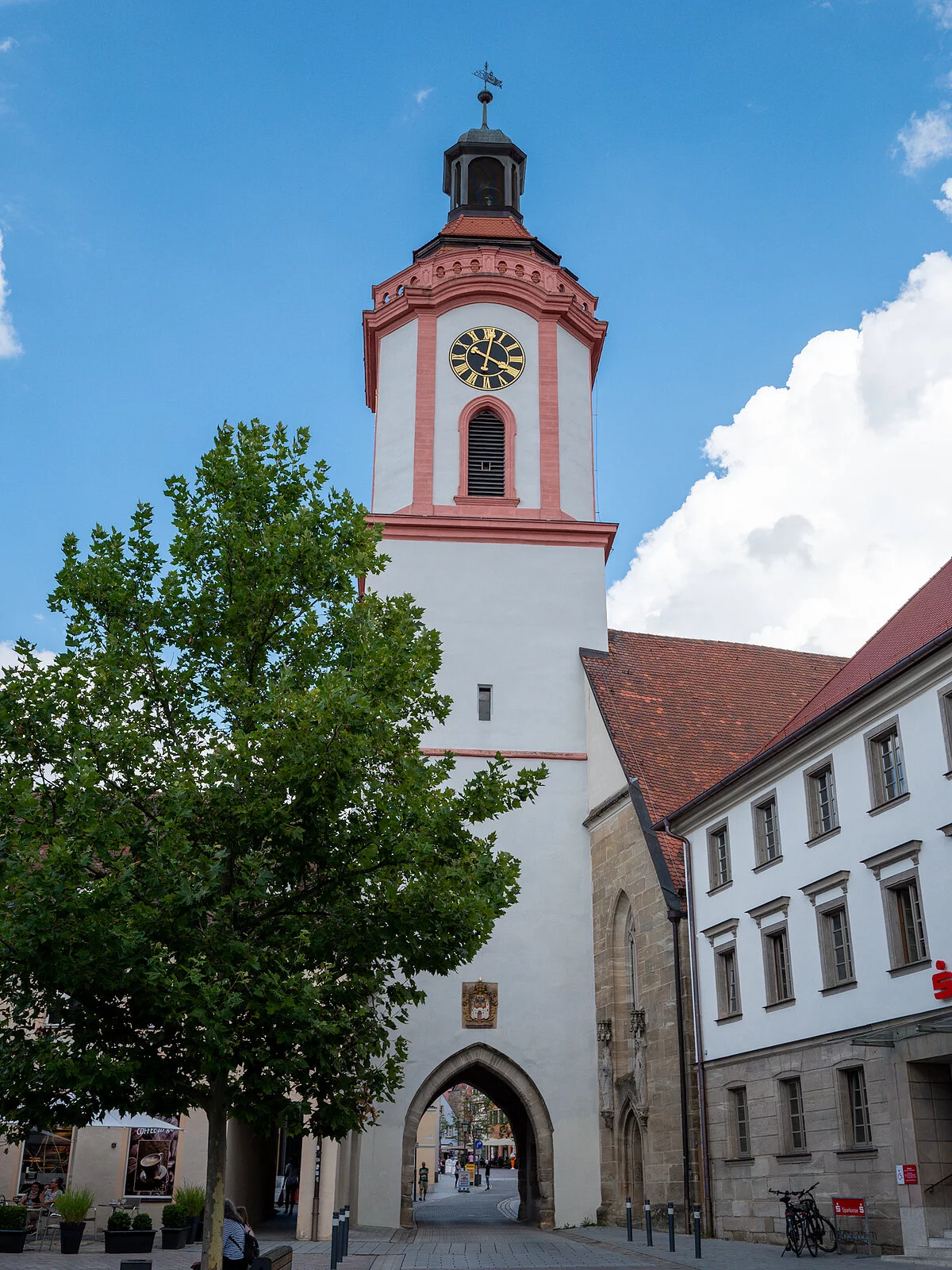 Kirche und Spital erbaut ab der Mitte des 15. Jahrhunderts über dem zugeschütteten ersten Stadtgraben. Barockisierung durch den Eichstätter Hofbaumeister Gabriel de Gabrieli in den Jahren 1728/29. An der Langhaussüdwand "Armenbibel" von 1480 mit Szenen aus dem Leben von Maria und Jesus, im Chor ebenfalls mittelalterliche Wandmalerei, qualitätsvolle Stuckaturen und Deckenmalereien (1729). Umfassende Renovierung von 1995-2003.