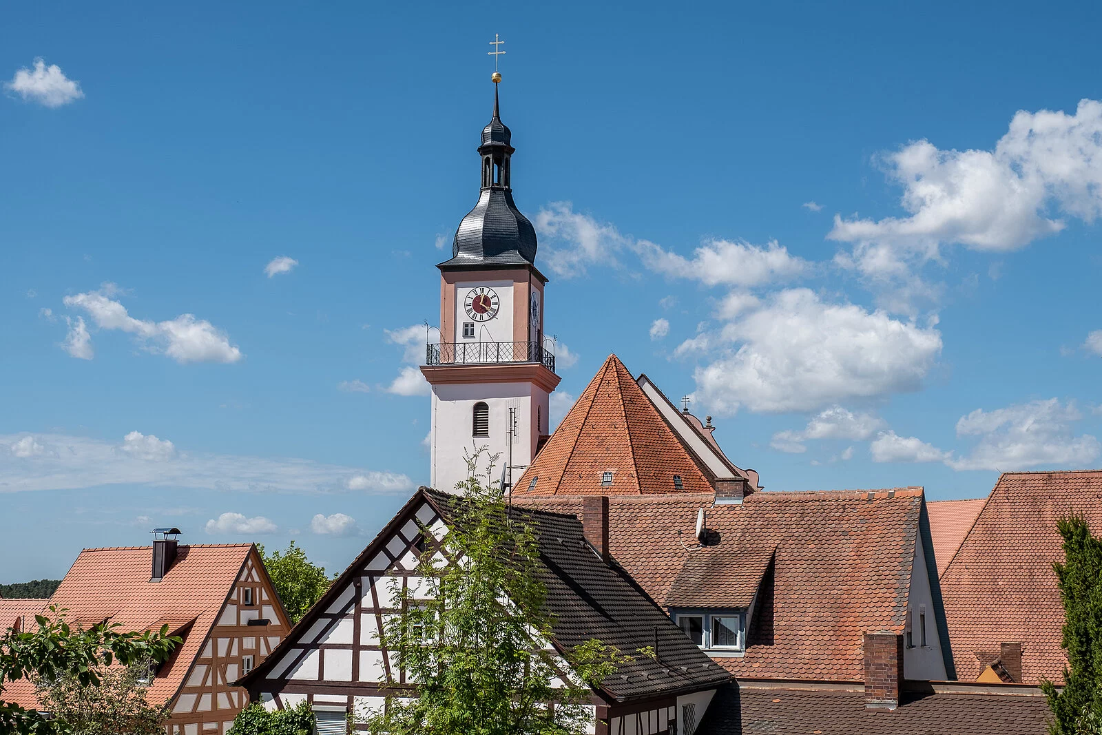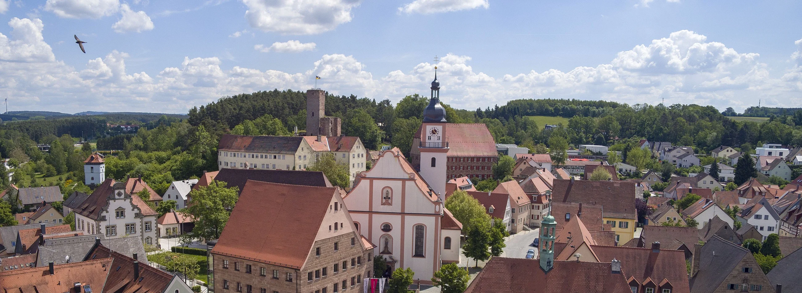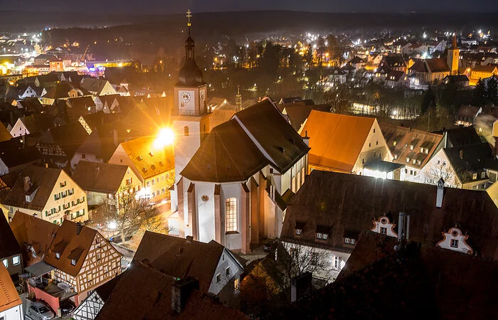 Die Hilpoltsteiner Pfarrkirche St. Johannes wurde 1473 erbaut. 1732 im Stil des Spätbarocks umgestaltet, wurde sie am 31. Mai 1735 von dem Eichstätter Fürstbischof Franz Ludwig Freiherr Schenk neu geweiht. In den Jahren 1887, 1929 und 2011 folgten umfassende Renovierungen und Restaurierungen. Die Kirche ist im Kern spätgotisch geblieben, Chor und Turmunterbau stammen von 1473. Die Deckenfresken zeigen unter anderem Szenen aus dem Leben von Johannes dem Täufer und wurden im 18. Jahrhundert von Melchior Puchner gestaltet. Die Stuckarbeiten im Langhaus fertigte Jeronimo Andrioli etwa zur selben Zeit. Besonders eindrucksvoll ist der Hochaltar von 1702, bestehend aus der rückwärtigen Tafel mit Säulen und geziert von lebensgroßen Figuren. Das imposante Gemälde des Jesuiten Paulus Bock von 1656 steht im Zentrum des Hochaltars und zeigt die Todesszene des Märtyrers Johannes der Täufer. Das Diözesanmuseum Eichstätt bestimmte das Hochaltarblatt in seiner Reihe von Objekten, die von besonderer künstlerischer oder historischer Bedeutung sind, 2017 zum „Kunstwerk des Monats“.