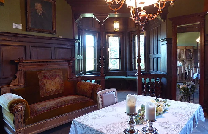 Im zweiten Obergeschoss erwarten den Besucher einige Wohnräume der Fabrikantenfamilie Aurnhammer. Die Einrichtung aus der Zeit des Historismus um 1885 hat sich bis heute erhalten. Zu sehen sind verschiedene Einrichtungsgegenstände, Eichenböden und wunderschöne Stuckdecken.